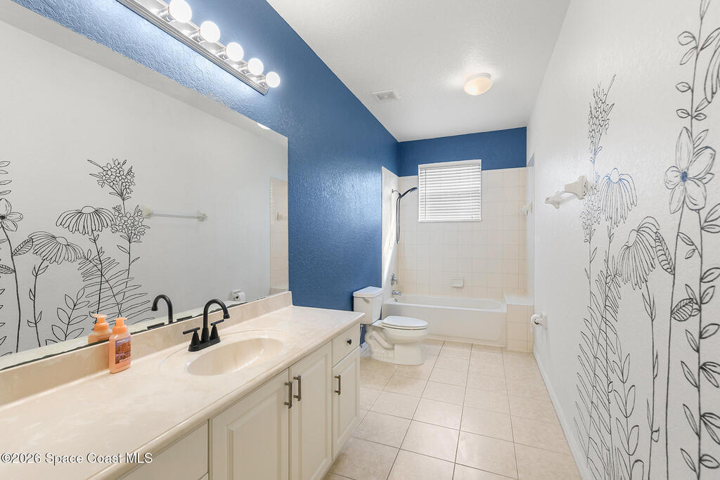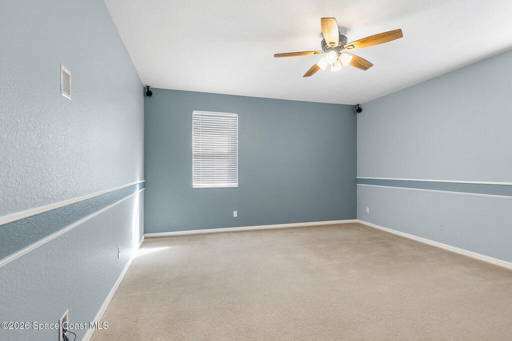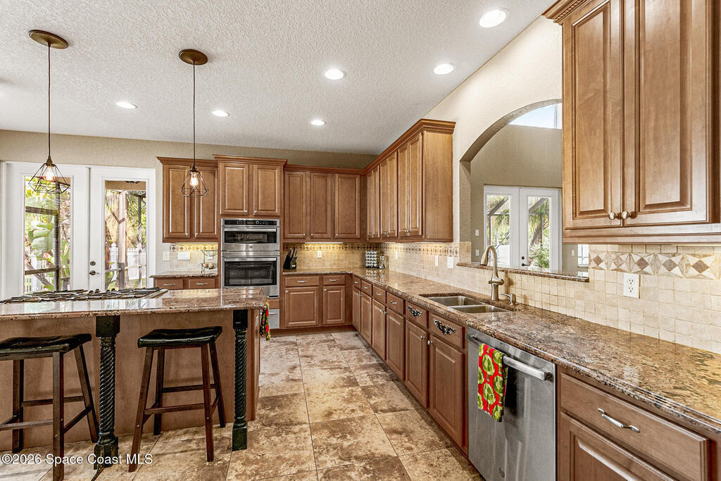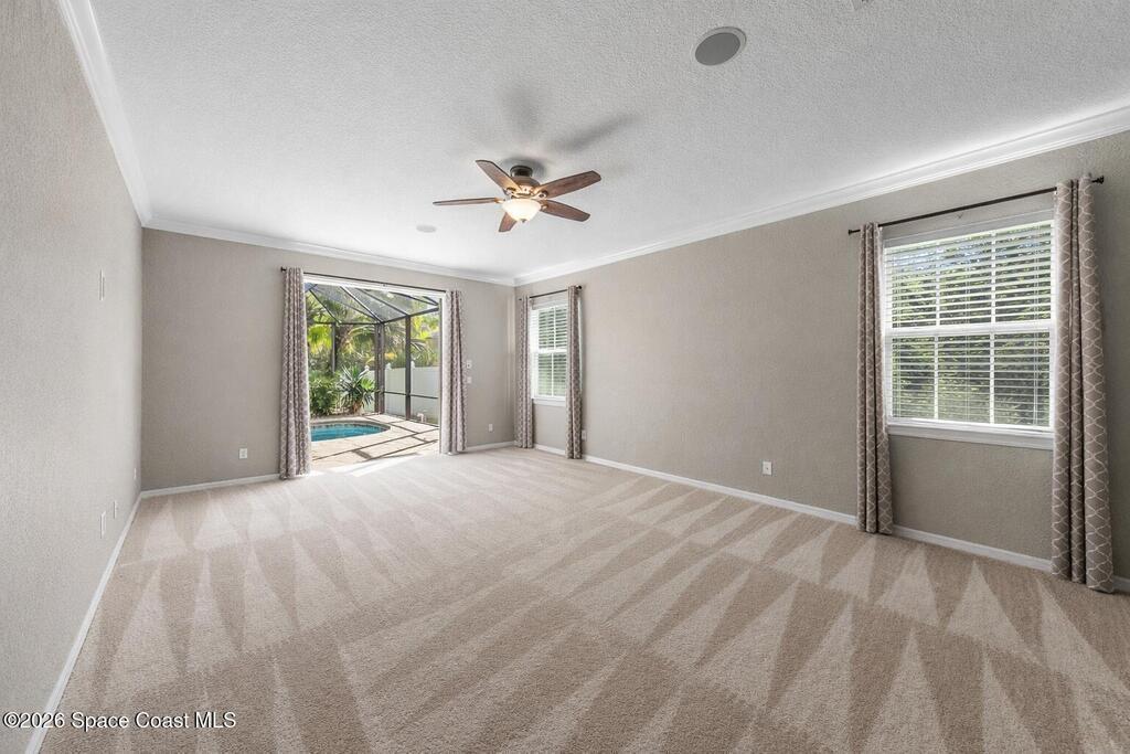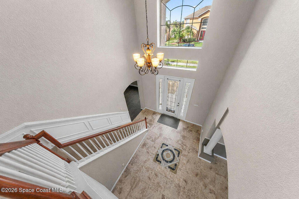 Exceptional space, comfort, and privacy define this stunning 5 bedroom, 3.5 bathroom pool home in the gated community of Chastain Manor. Offering nearly 4,000 square feet of living space, the thoughtfully designed layout includes a private office and spacious primary suite on the main level, plus an upstairs loft, four secondary bedrooms, and three full baths. The updated kitchen features 42'' cabinets, granite countertops, and a gas cooktop. Vaulted 20-foot ceilings, crown molding, custom tile, and a gas fireplace add elegance throughout. Enjoy rocket launches all year round from your screened heated saltwater pool, large patio and fenced yard backing to protected wetlands. Oversized 3-car garage for added storage. Minutes to I-95, 5 minutes to The Indian River, 12 minutes to The Brevard Zoo, 15 minutes to the beach and Patrick's Space Force Base.