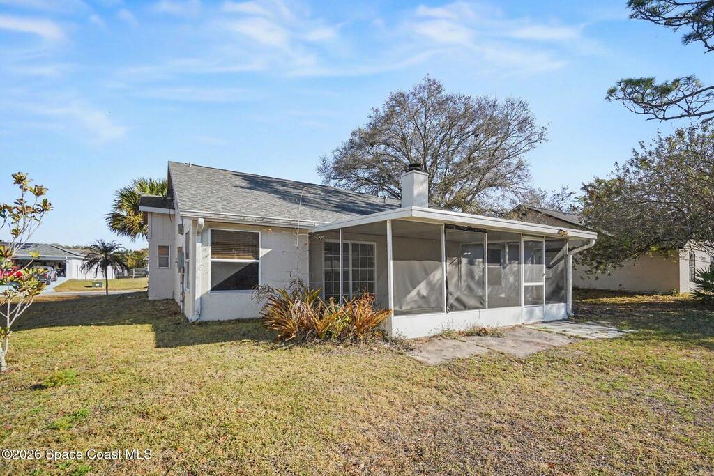 Tucked into a quiet street in the NW section of Palm Bay, this charming 3-bedroom, 2-bath home invites you to slow down and picture life here.As you pull into the driveway, you're welcomed by mature trees, a well-kept lawn, a new roof installed in 2024, and a cozy front porch just waiting for morning coffee. Step inside and you'll find a warm, comfortable living space centered around a wood-burning fireplace -- the kind of spot where holiday decorations glow and cool evenings feel extra cozy.The split-bedroom layout offers privacy and functionality, with 1,524 square feet designed for everyday living. The kitchen and dining areas flow easily for family dinners, homework at the table, or hosting friends on the weekend.Out back is where Florida living truly shines. Imagine opening the door to your screened porch, stepping outside with a cold drink in hand, and enjoying evenings without the bugs.