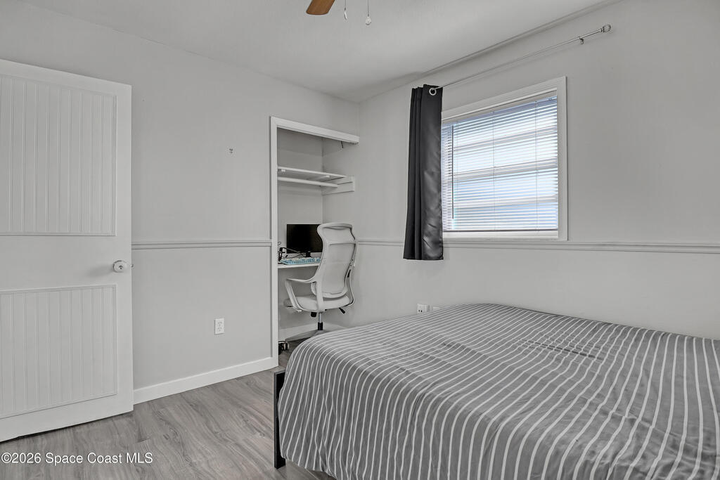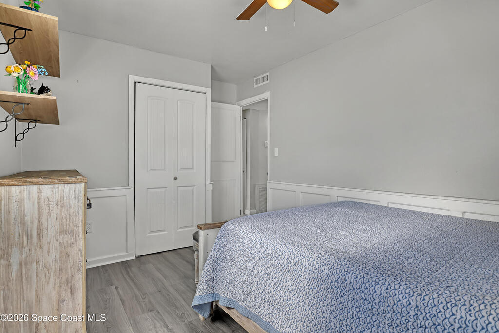 Cute and affordable house in North Melbourne. Very nicely revitalized by previous owner in 2021. Roof, A/C, wiring within 5 years. **Ready to sell**. LVP flooring throughout. Everyone gets private bathroom as house has 3 FULL BATHS. Large screened patio and a storage shed out back. Fenced yard on a corner lot. A Bonus feature--PVC piping from the house to the road. Located just 5 minutes to Publix, Eastern Florida State College, King Center, and city pool. Don't let this one get away!!
