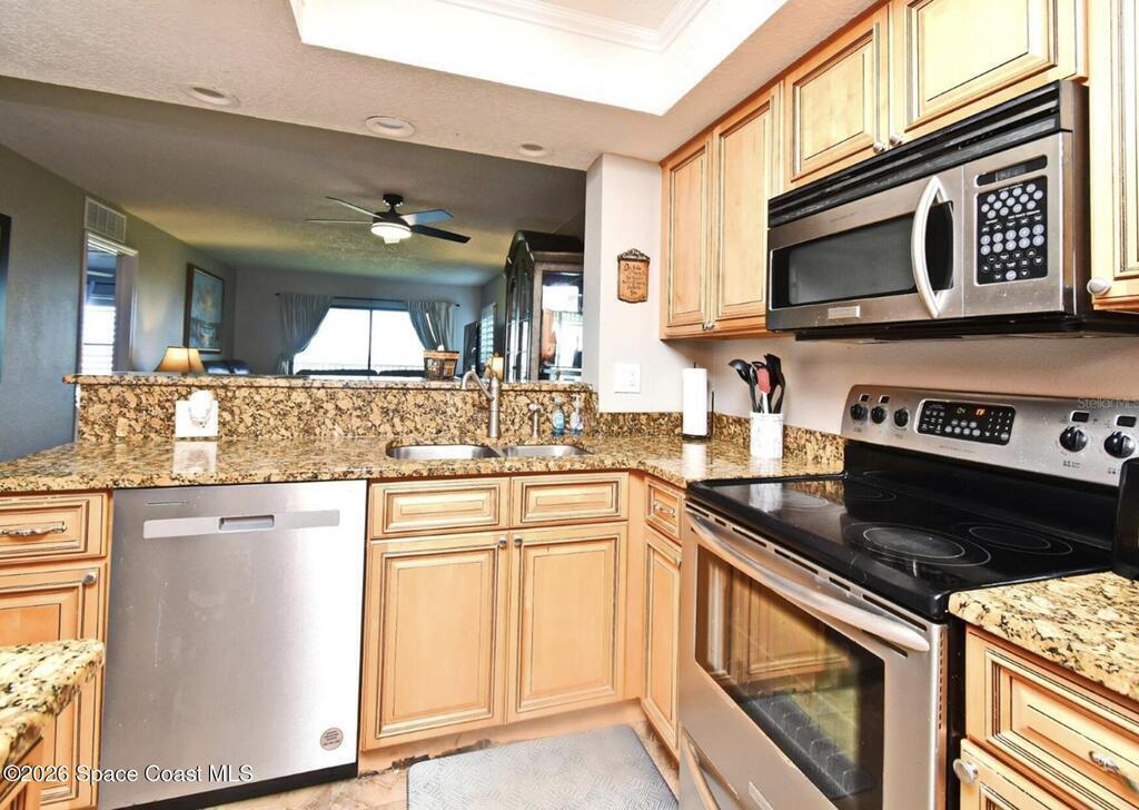 Discover your dream oceanfront condo, a stunning two-bedroom, two-bathroom sanctuary that offers both luxury and convenience. This condo is ideal for short-term rentals, second homes, or even as a primary residence. Situated along the pristine coastline, this exquisite property boasts an outside balcony that offers breathtaking views of the ocean, perfect for enjoying morning coffee or evening sunsets. Inside, you'll find elegant tile floors and high-quality stone countertops, complemented by solid wood cabinetry that adds a touch of sophistication to the modern kitchen. Equipped with top-of-the-line stainless steel appliances, this space is both beautiful and functional, making it a delight for any culinary enthusiast. The condo's updated bathrooms are designed with relaxation in mind, featuring contemporary fixtures and finishes that create a spa-like atmosphere. For added convenience, a shared garage is included, providing secure parking and additional storage space.