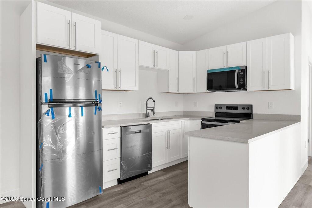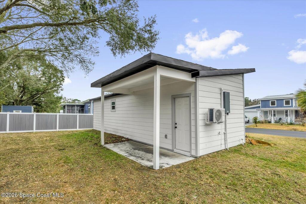 Where smart design meets modern charm, this beautifully designed 1-bedroom, 1-bath tiny home in the Peacewind community of Cocoa lives much bigger than you'd expect. Step inside and fall in love with the bright, contemporary feel featuring luxury vinyl plank flooring, sparkling quartz countertops, stainless steel appliances, and a beautifully designed modern bathroom. The open layout maximizes every inch of space, creating a cozy yet stylish home that feels intentional, inviting, and easy to maintain. Perfect for first-time buyers, downsizers, seasonal residents, or anyone craving simplicity without sacrificing style. Enjoy morning coffee in your own private retreat and evenings just 20 minutes from the beach. Peacewind offers a dog park and playground, adding to the welcoming community vibe, while the location keeps you close to shopping, restaurants, and major highways for effortless everyday living. Big comfort. Low maintenance. The sweetest little place for your next home.