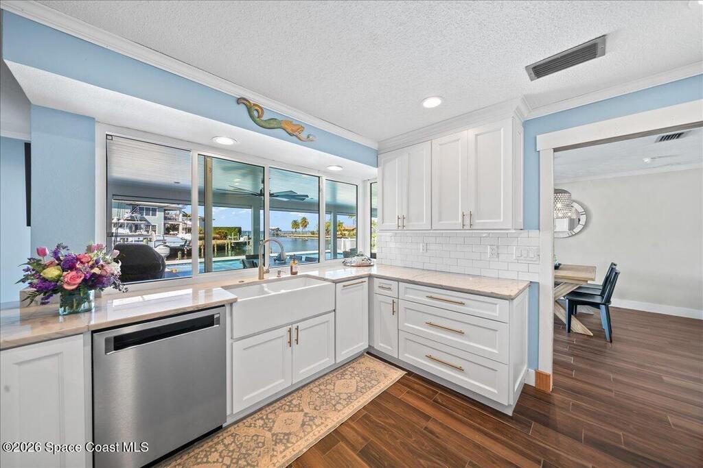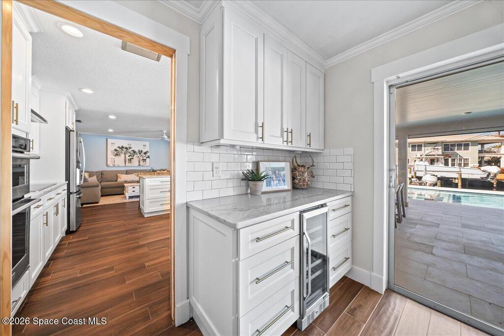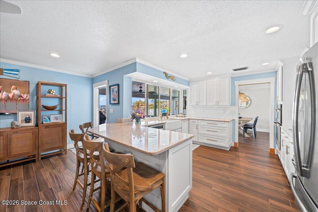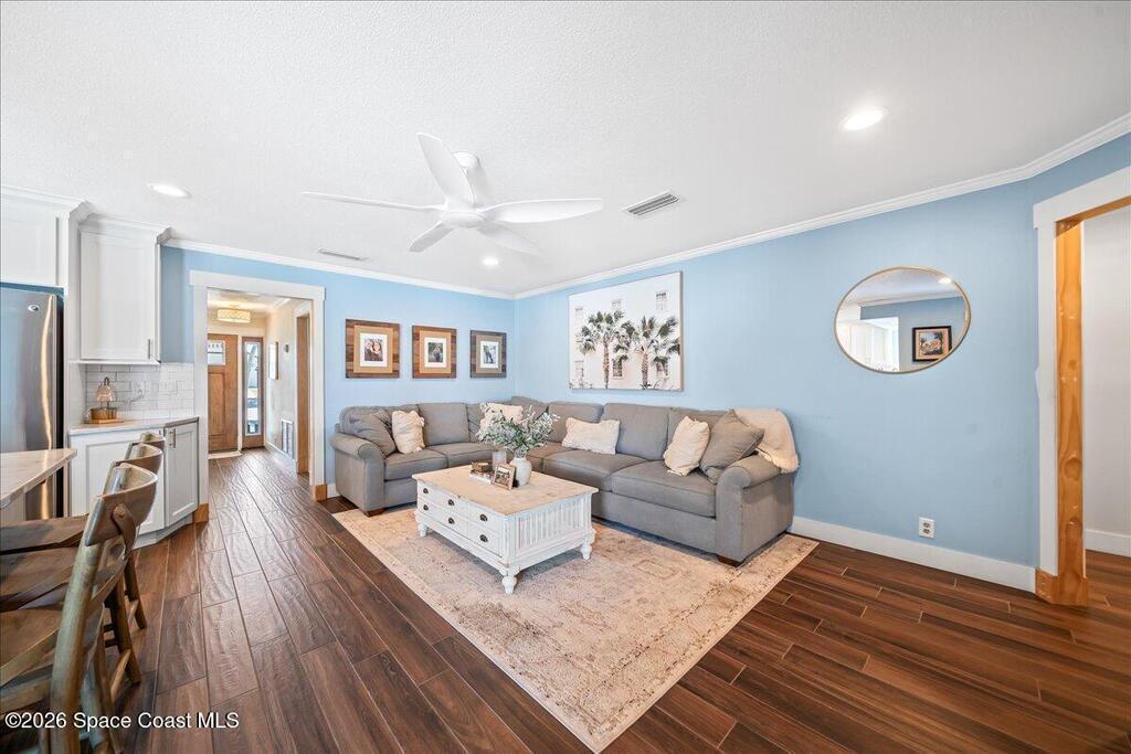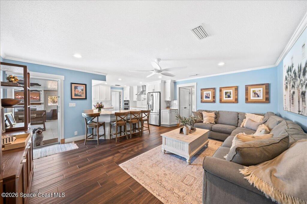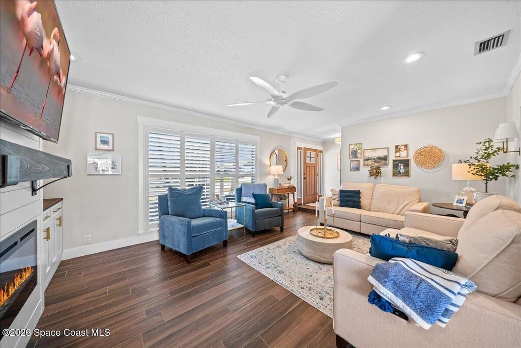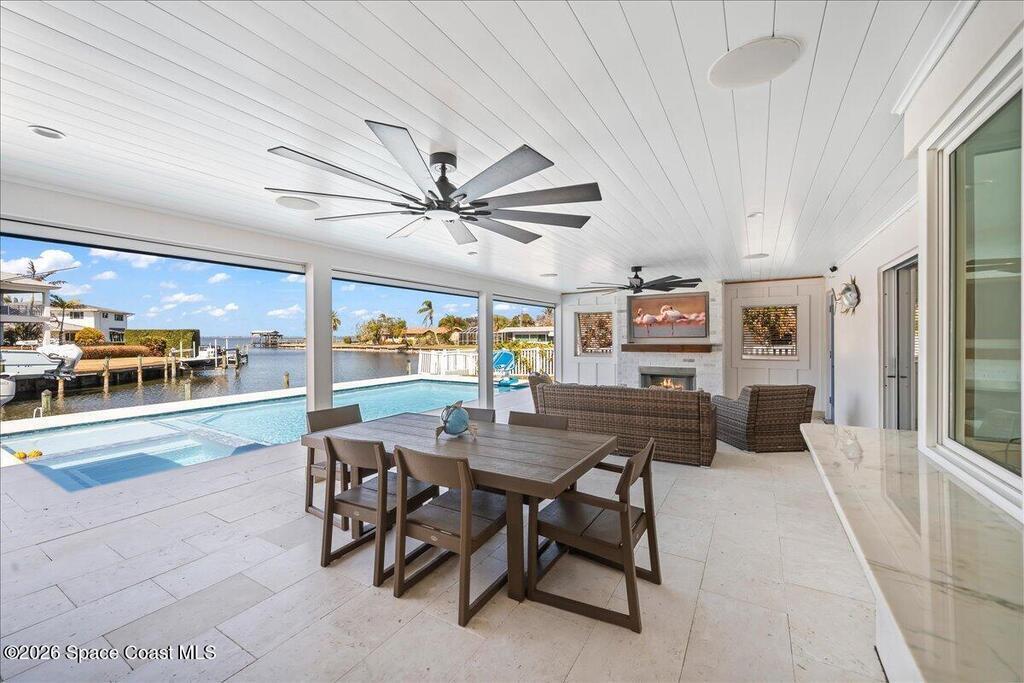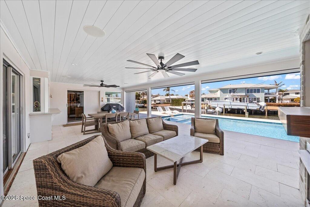 Perfectly positioned on a wide canal with direct access to the Indian River, this fully renovated Harbor East residence delivers effortless coastal living in one of Melbourne Beach's most desirable waterfront communities. Thoughtfully redesigned with a functional split floorplan, the home showcases timeless finishes, sunlit interiors, and seamless indoor-outdoor flow. The beautifully updated kitchen opens to spacious living areas, all oriented to capture tranquil water views. Step outside to a covered lanai with hurricane-rated roll-down shades, a newly built heated pool and spa, and a private dock ideal for boating enthusiasts. Major upgrades include impact windows and a new metal roof, offering both style and peace of mind. Zoned for highly regarded Gemini Elementary and just a short bike ride to the beach, Ocean Avenue's restaurants, and local shops, this move-in ready home embodies the very best of the Melbourne Beach lifestyle.