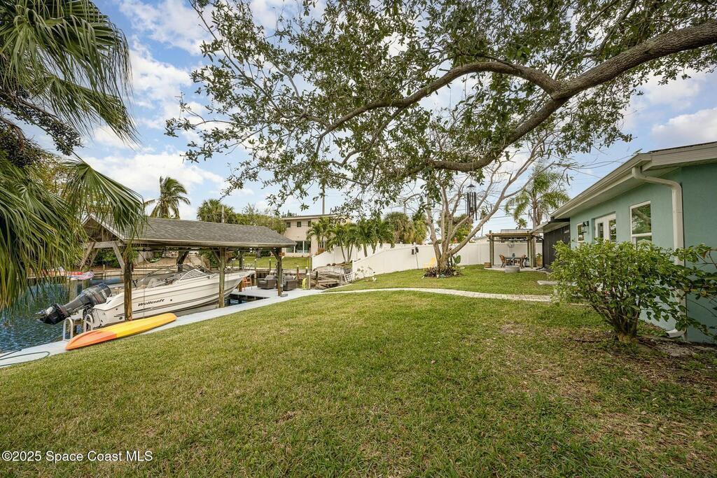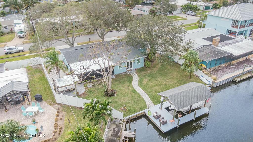 NEW in Satellite Beach, FL! Experience coastal luxury at its finest in this beautifully updated 2 BED+ | 2 BTH WATERFRONT retreat offering a versatile layout.... perfect for modern living! Featuring a stunning quartz kitchen, spacious living area and a custom primary suite, this home blends comfort and style with abundant natural light flowing through the open floor plan to a screened patio overlooking serene water views. Step outside to a tropical, fenced backyard oasis complete with a private dock where dolphins and manatees are frequent visitors, plus a newer boat lift (2024) for effortless waterfront adventures! Recent upgrades include a new EV Charging Station, Roof (2023), Lennox HVAC Furnace (2025), Water Heater (2024) and a spacious LANAI added in 2025. Fantastic BEACHSIDE proximity, with NO HOA and just minutes from shopping, dining and A-Rated schools... this exceptional property delivers the ultimate SPACE COAST lifestyle!