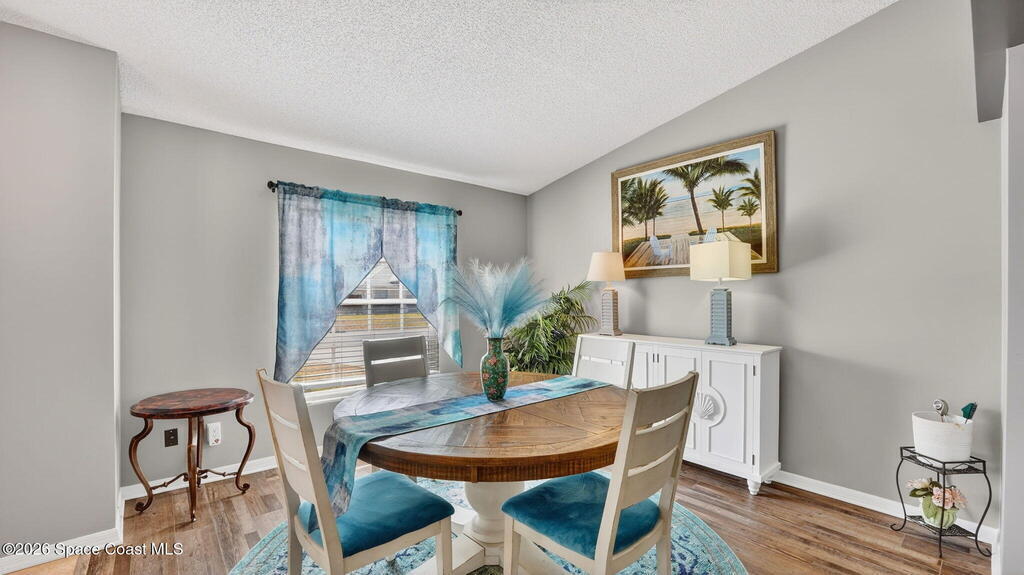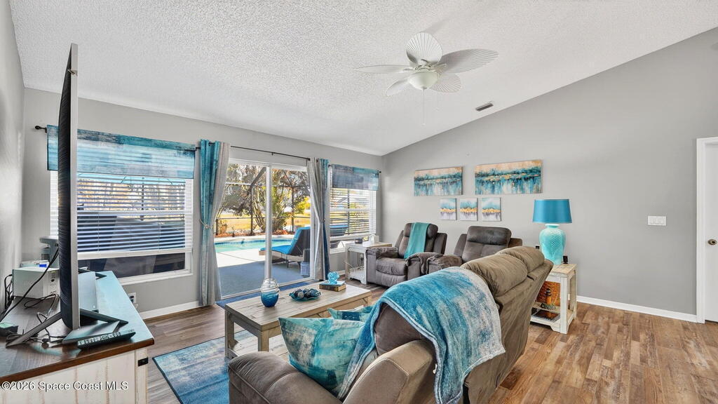 Tucked inside the charming community of Sabal Grove, this beautifully refreshed pool home offers the perfect blend of comfort and Florida lifestyle. A freshly painted exterior and updated lighting welcome you into a light-filled layout with newer LVP flooring throughout. Formal living and dining rooms set the stage for gatherings, while the central living area features a kitchen with breakfast bar and sliding doors that frame your private screened pool and peaceful pond views. The split floor plan ensures privacy for the primary suite, while newer stainless steel appliances, hurricane shutters, interior laundry, an epoxy-coated garage floor, and a backyard shed add convenience and peace of mind. Ideally located between Cocoa Village and Viera for shopping and dining, close to Dick Blake Park with nature trails, soccer, and playground, and under 5 miles to SR 520 for quick access to the rivers and Atlantic beaches. This home delivers the Space Coast lifestyle you've been waiting for!