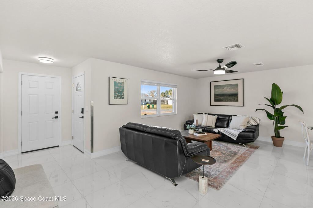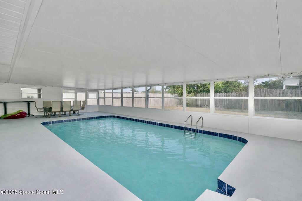 Welcome to this beautifully updated pool home in Merritt Island Florida, just minutes from the Indian River and a short drive to Cocoa Beach. This 3 bedroom plus office or bonus room, 2 bathroom home has been renovated and is move in ready. Updates include a newer roof, updated plumbing and electrical, and all new impact windows for efficiency and storm protection. The insulated garage has air conditioning and epoxy flooring, ideal for a gym or workshop. A rare indoor heated pool, fully resurfaced and heated by solar or gas, offers year round enjoyment. Tile flooring runs throughout with an updated kitchen and renovated baths. No HOA allows flexibility for short term rental or primary living. Close to beaches, Port Canaveral, Kennedy Space Center, shopping, dining, and an easy drive to Orlando.
