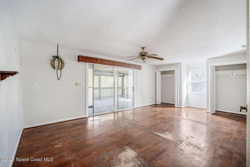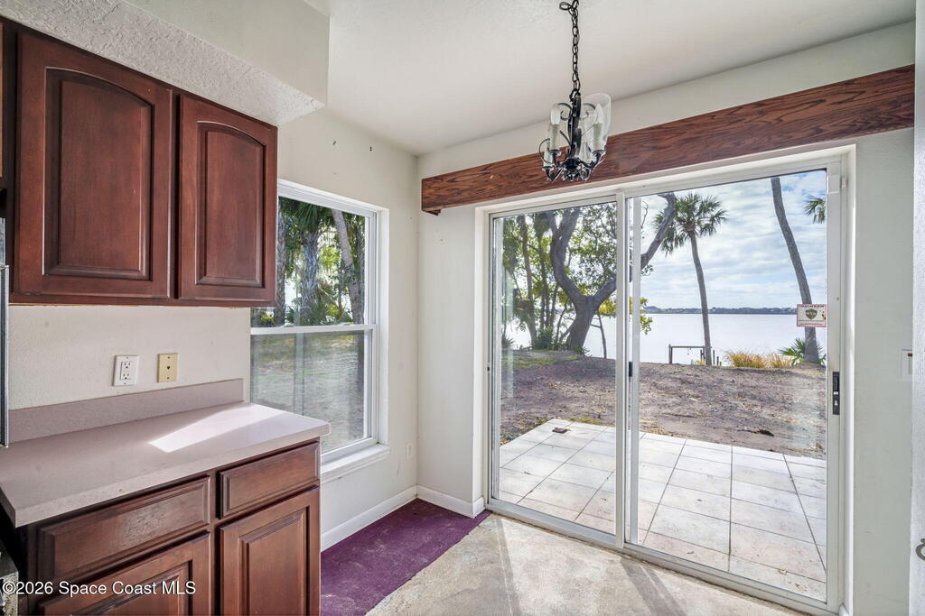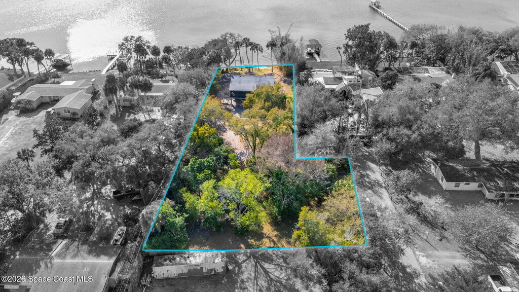 Situated on a 0.52-acre lot with 100 feet of direct Indian River frontage, this 3-bedroom, 2-bath home offers 2,168 square feet and exceptional potential. Built in 1968, it is ready for renovation or expansion with no HOA restrictions. The listing includes an adjoining 0.32-acre lot to the east for a combined total of 0.84 acres, creating rare flexibility for future construction such as a large detached garage with living quarters, additional residential structure, or simply preserving the extra space for privacy, all subject to county approval. Conveniently located near beaches, shopping, dining, and major roadways with easy access to Orlando, this is a unique opportunity on Merritt Island.