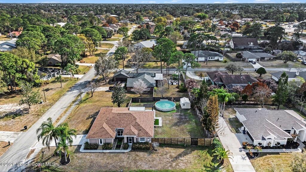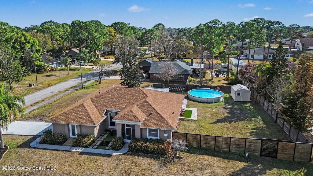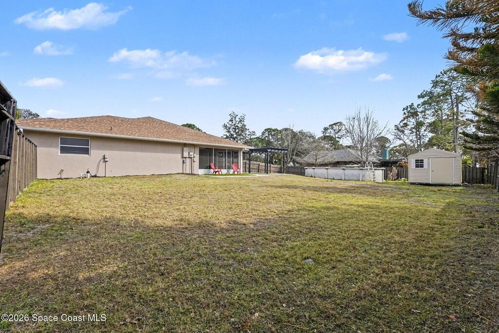 Immaculate 3-bed, 2-bath home with a split-bedroom floor plan, 2-car garage (climate controlled), nearly 1,800 sq ft of bright living space on a huge corner lot. Built in 2001, offers newer construction in established Lockmar plus a new 2026 roof, fresh interior/exterior paint, new driveway, and well-maintained mechanicals. Enjoy an open flow from kitchen to living areas, with sliders to the large screened porch for seamless indoor-outdoor living. The backyard features a pergola and large above-ground pool that has been maintained professionally weekly. The split layout provides privacy for family, guests, or an office. Additional features: screened front entry, privacy fence, irrigation system, shed, RV/boat parking, AC approx. 6 years old, newer water heater, and NO HOA. Located in sought-after Lockmar Estates, walking distance to Lockmar Elementary and Pineapple Cove, minutes to I-95, shopping, dining, and beaches. Custom-built, well maintained, move-in ready-a rare opportunity!