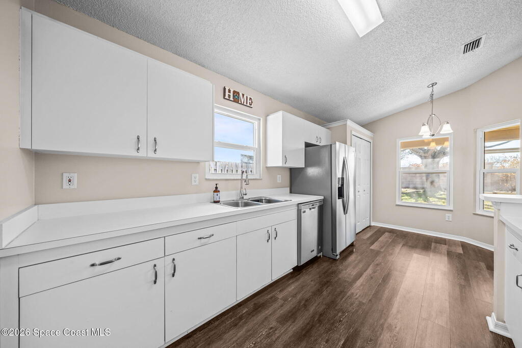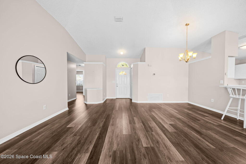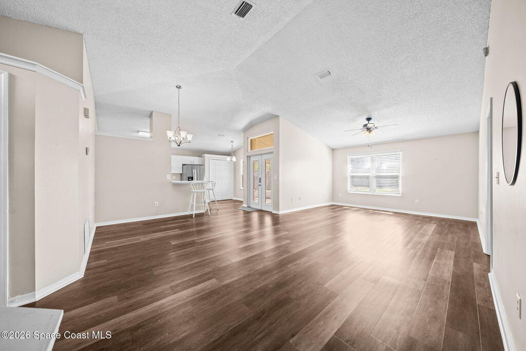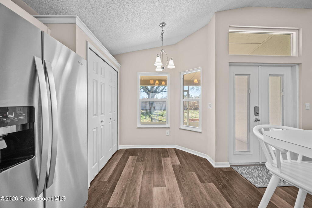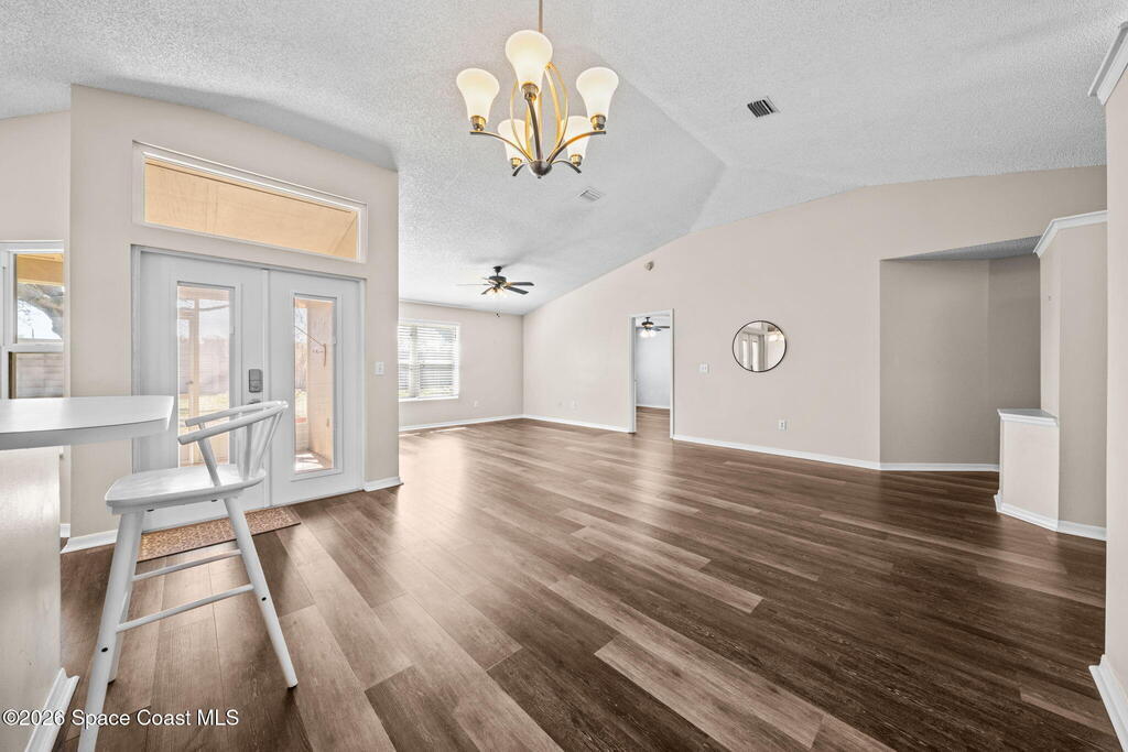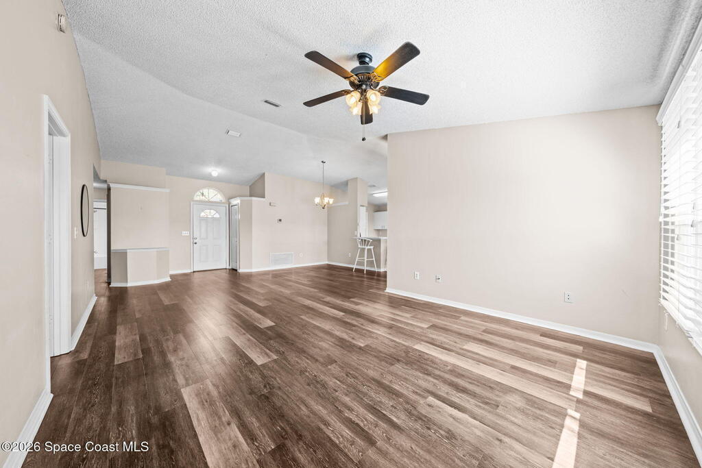 Located in a quiet Viera neighborhood, this home offers comfortable, convenient Florida living. The open living area features an eat-in kitchen and durable luxury vinyl plank flooring throughout. The spacious primary suite includes a walk-in closet and walk-in shower, and the fully updated guest bathroom adds modern appeal.Impact windows were installed in 2020 for added protection and efficiency. Enjoy the screened-in porch and private backyard for outdoor relaxation. The refrigerator, washer, and dryer all convey with the home.The community includes walking trails, lakes, and a playground. Just minutes from shopping, dining, A-rated schools, and only three minutes to I-95, this location makes commuting to Orlando and around Brevard County easy.Tour this one and make it yours!