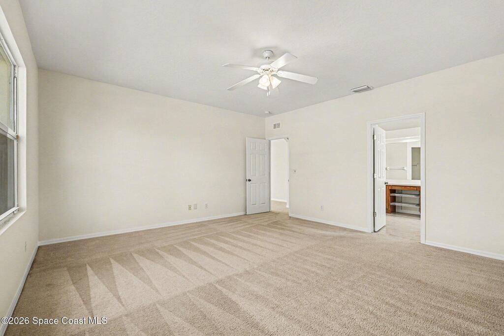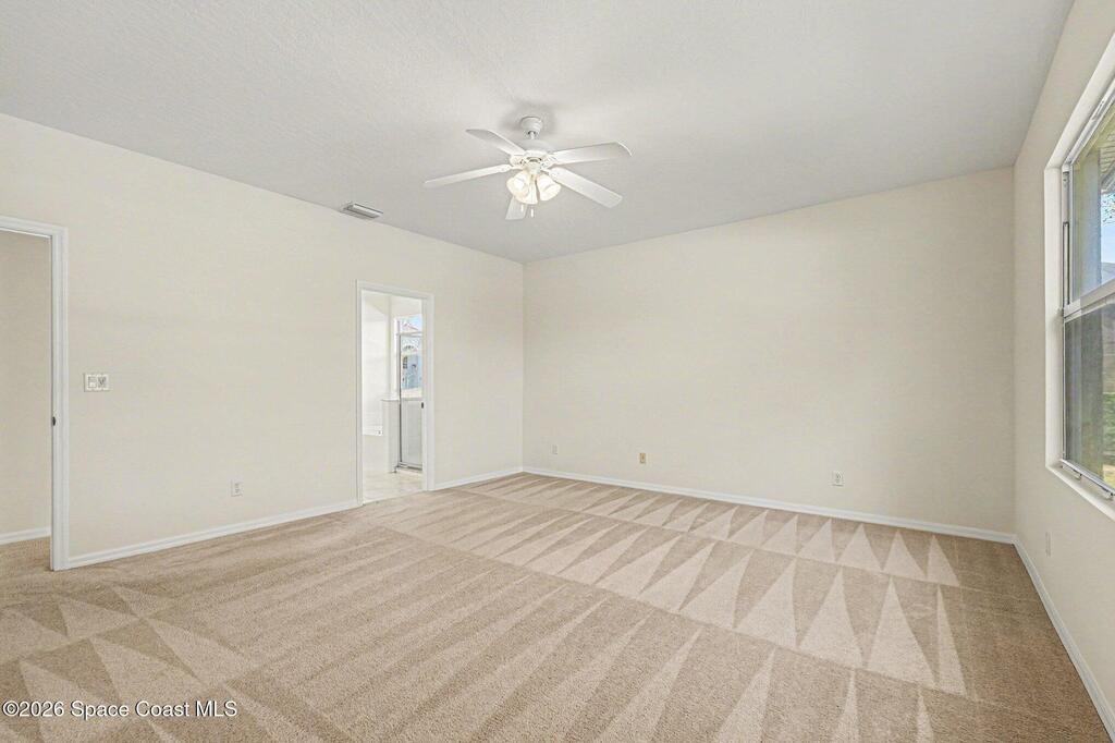 Beautifully maintained home with low annual HOA fees and numerous recent updates! Freshly painted inside and out -- including garage walls and floor -- this move-in ready property features new LVP flooring in the formal dining room, ceiling fans in every room, and a convenient inside laundry room. The open family room flows seamlessly from the kitchen, showcasing stainless steel appliances, Corian countertops, oak cabinetry with an island, abundant storage, recessed lighting, and a walk-in pantry. The spacious owner's suite offers dual sinks, a walk-in closet, glass shower, and relaxing Roman tub. Step outside to a large screened and covered lanai overlooking a tranquil neighborhood pond with fresh mulch and beautiful Oak tree. Major systems -- roof, HVAC, and water heater -- are all newer than fall of 2024. This home is located in Sandhill Trace in desirable Grand Haven off the Pineda Extension and perfect for I-95 travel, the new Costco, grocery markets, and other daily conveniences.