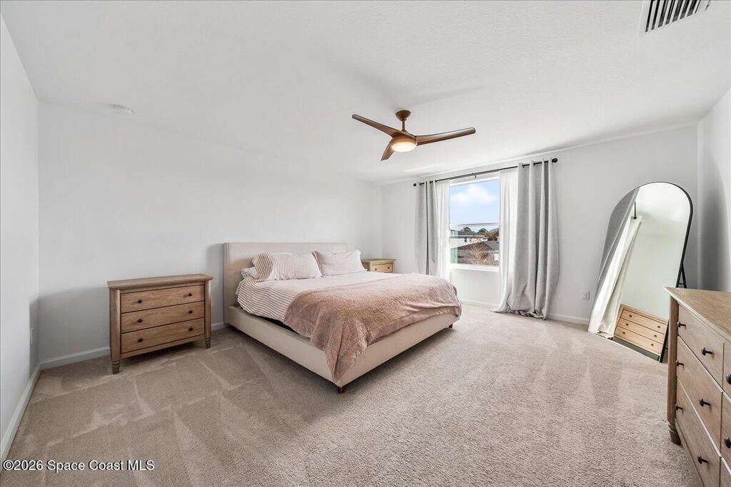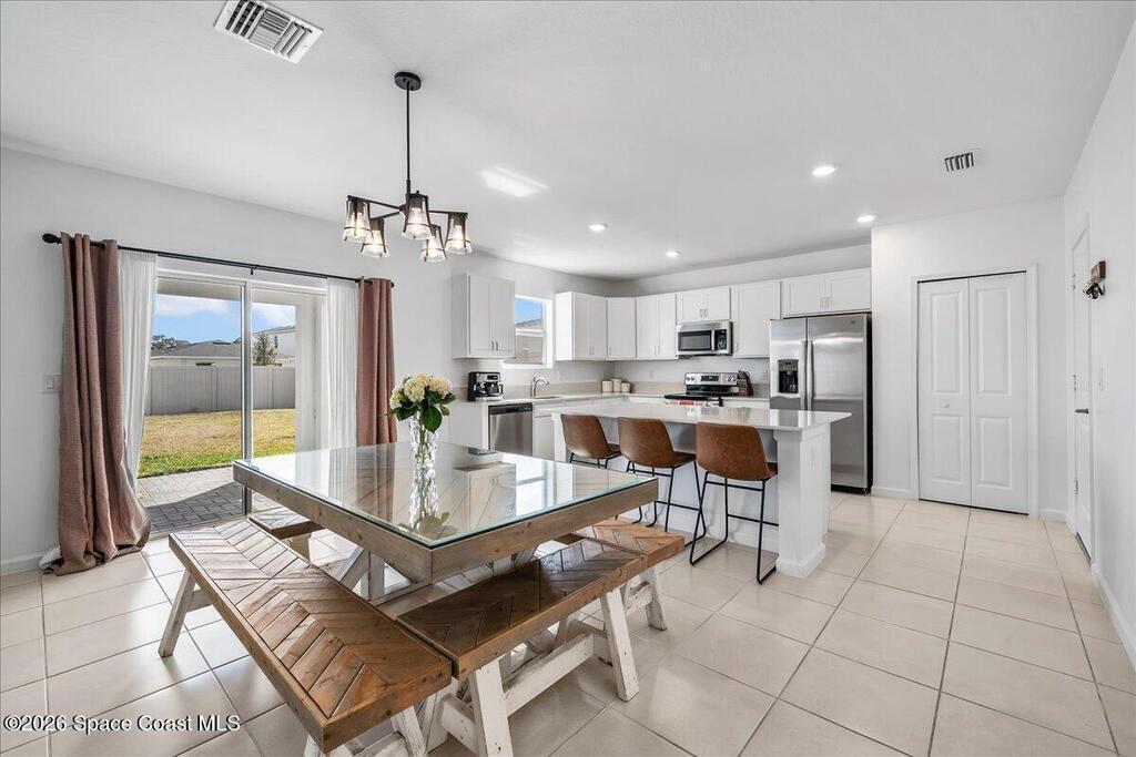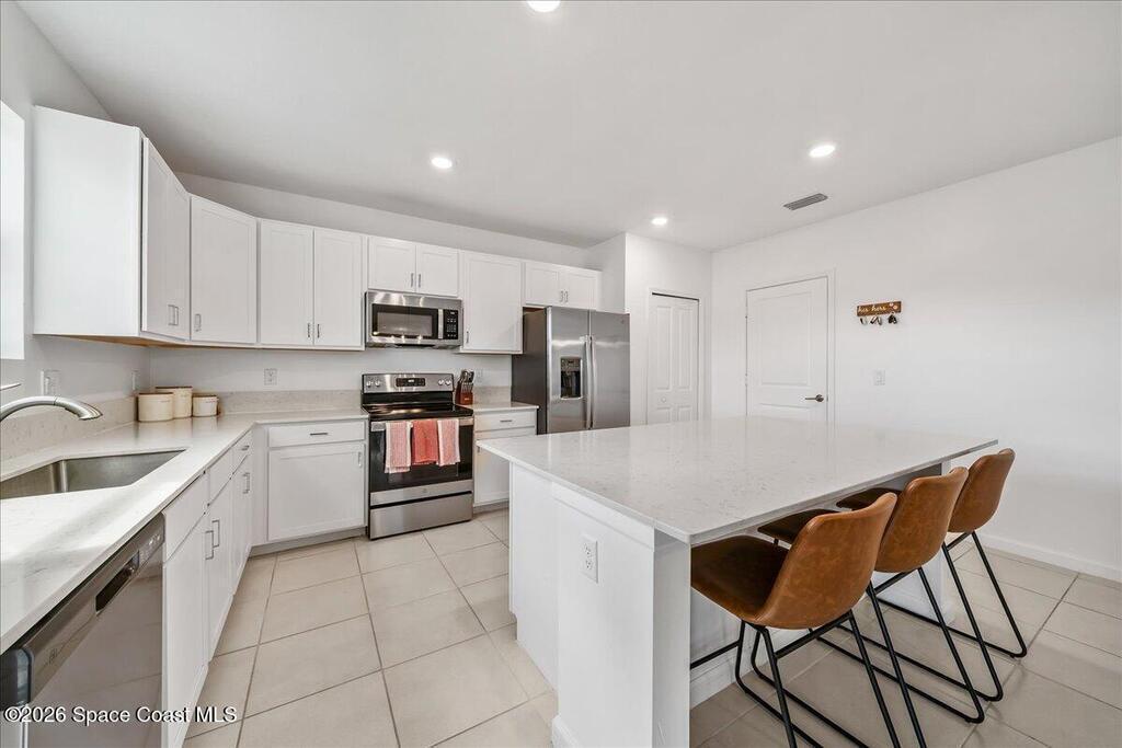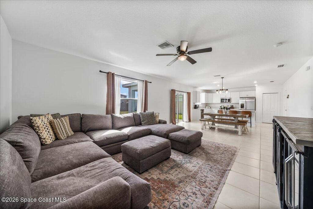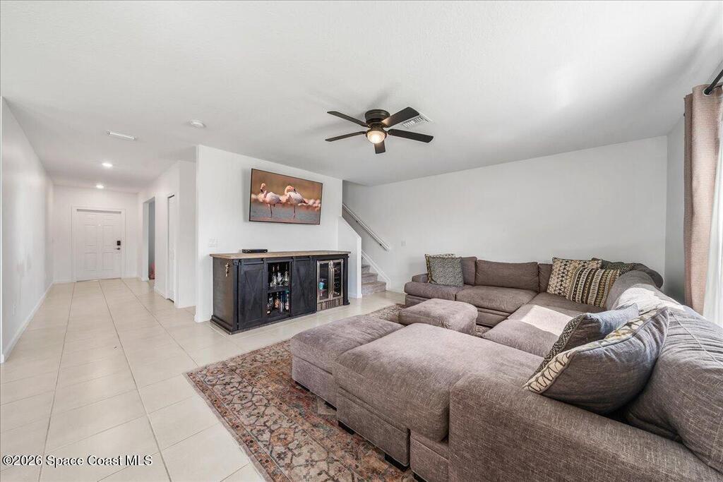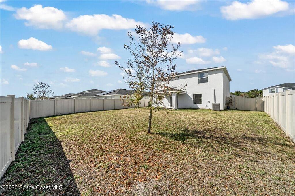 Welcome to this spacious 4 bedroom 2.5 bath residence nestled in the heart of Palm Bay. This thoughtfully designed home offers the perfect blend of comfort, style, and everyday convenience. Step inside to an inviting open floor plan that flows seamlessly from the living area to the dining space, creating an ideal setting for both entertaining and daily living. The well appointed kitchen features modern appliances, ample cabinetry, and a large center island perfect for gathering, meal prep, or casual dining. The primary suite provides a peaceful retreat with an en suite bathroom and generous closet space. Upstairs, a versatile loft area offers endless possibilities for a home office, media room, playroom, or additional lounge space. Downstairs there is a second bonus/office room! Enjoy Florida living in your spacious private backyard with plenty of room to relax, entertain, or create your own outdoor oasis. This home is just minutes away from local parks, shopping, dining, and schools.