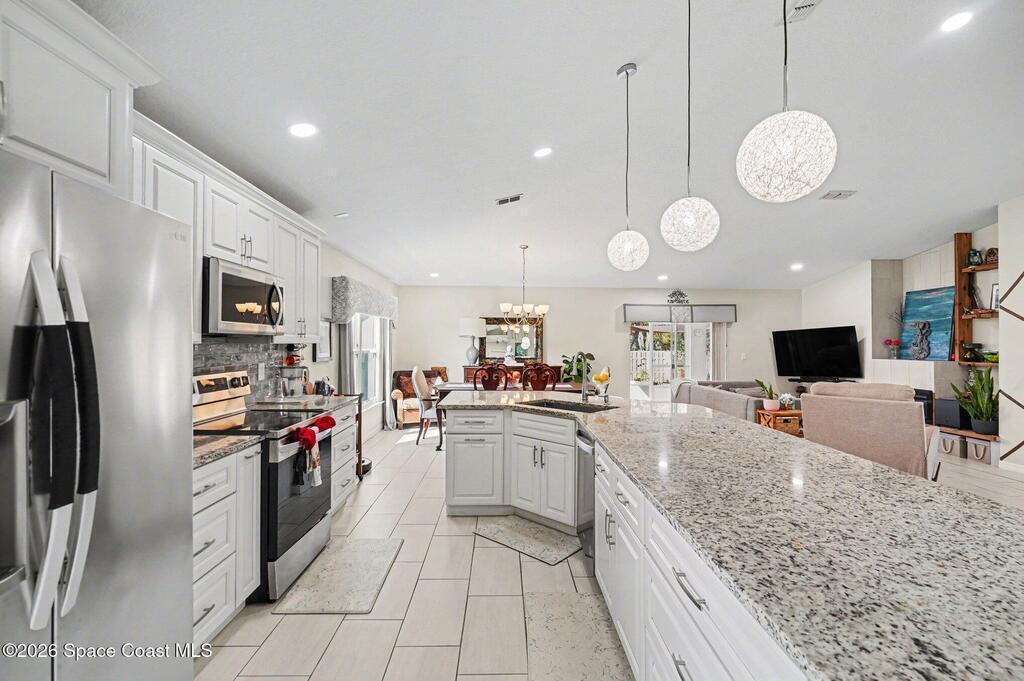 Welcome to your dream home in Timber Ridge, West Melbourne! This stunning property combines modern amenities with a family-friendly atmosphere, just minutes from shopping and dining. Inside, you'll find an inviting space featuring elegant granite countertops and updated wood cabinets in the kitchen, complemented by stainless steel appliances. Ceiling fans in all bedrooms and the living room ensure comfort year-round, while new lighting fixtures enhance the ambiance. The functional layout includes tile flooring in the kitchen, living, and dining areas, along with two bedrooms, making maintenance easy. An extended kitchen pantry offers ample storage, and custom-built shelving adds personalization. Enjoy cozy evenings by the fireplace in the living room. The updated bathrooms feature new shower and bath tiles, modern cabinets, faucets, and toilets. The main bedroom includes an extended closet for your convenience. Outside, you will find a 6-foot wood fence ensuring privacy, along with a