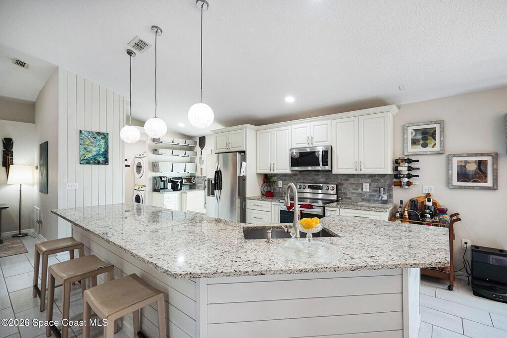 - Equipment/AppliancesDishwasher, Disposal, Electric Oven, Electric Range, Electric Water Heater, Gas Water Heater, Ice Maker, Microwave, Plumbed For Ice Maker, Refrigerator and Washer/Dryer Stacked