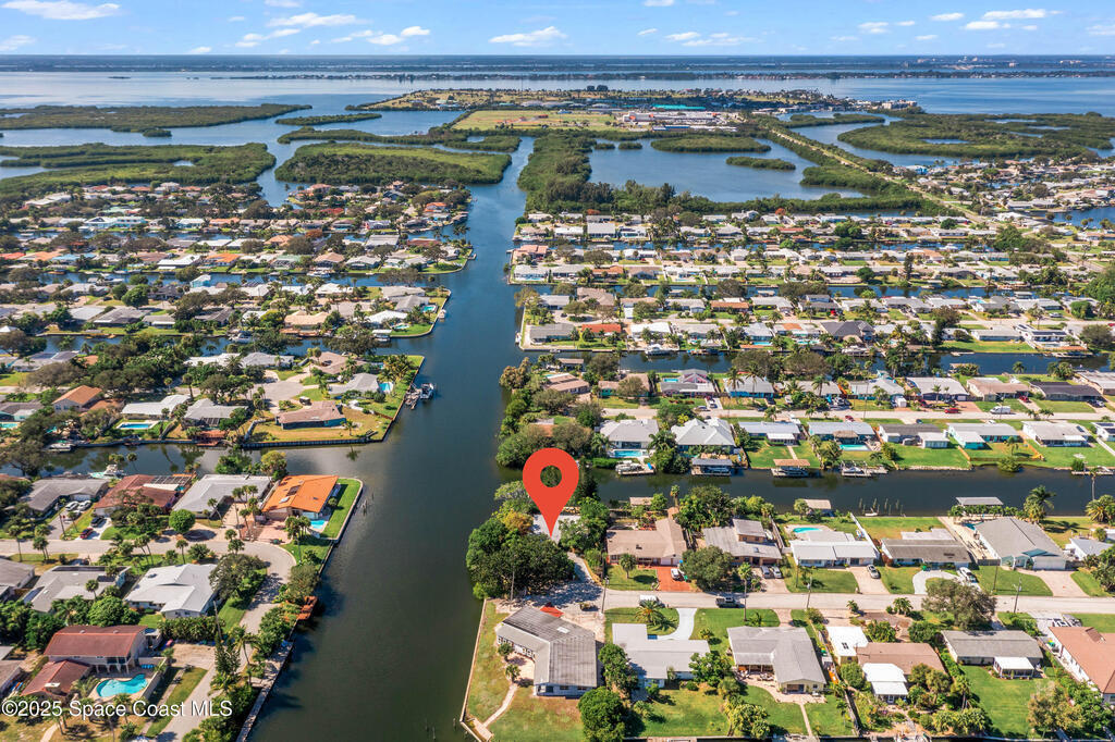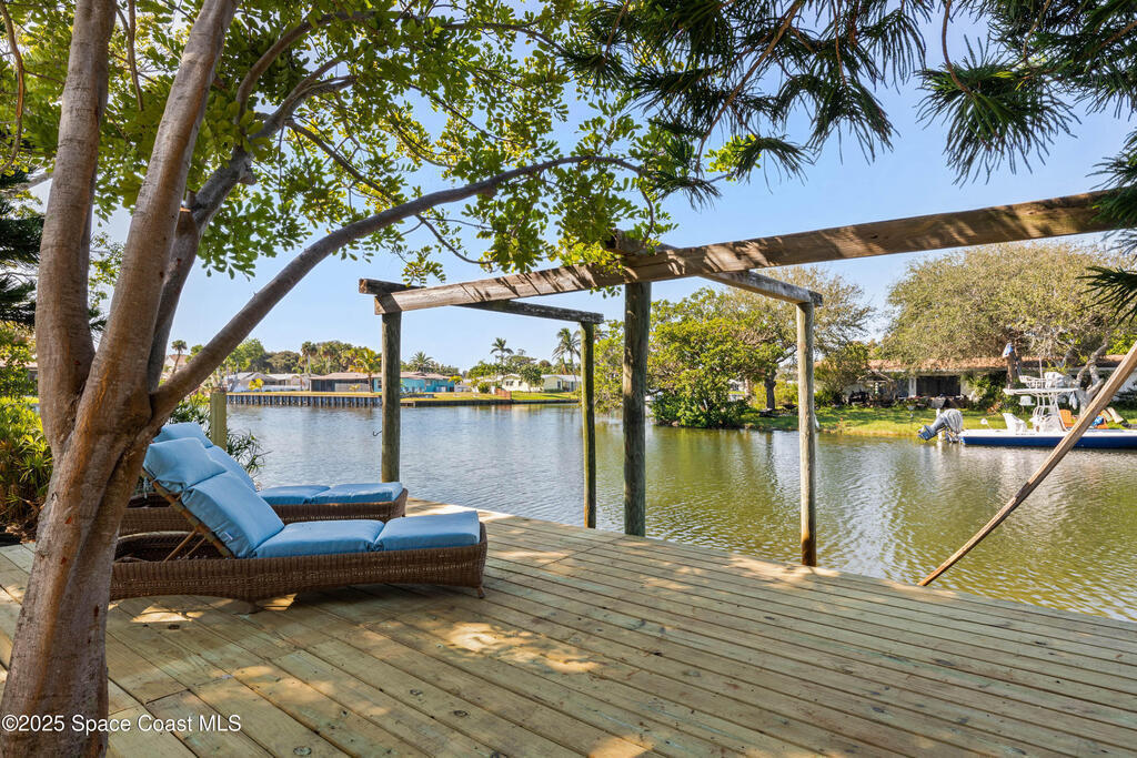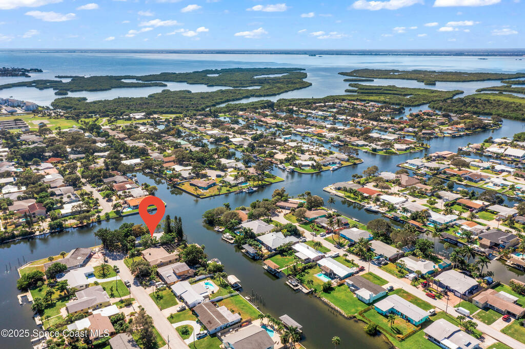 Rare corner canal lot just steps from downtown Cocoa Beach and the ocean with exceptional redevelopment potential. This deep-water property offers approx. 230 ft of wide canal frontage -- one of the largest and most desirable corner waterfront positions in the area -- with direct Banana River access, wide water views, excellent boating, and premium dock potential. Walk to shops, dining, and entertainment while enjoying standout canal frontage -- a rare combination in Cocoa Beach.Existing improvements include a fully furnished main home, attached studio ADU with kitchen and bath, heated pool, and 2023 roof (furnishings negotiable). Use, rent, renovate, or remove while planning a custom waterfront estate. Oversized corner lots with this frontage and location rarely come available -- ideal for builders, investors, or end users seeking a signature waterfront property.