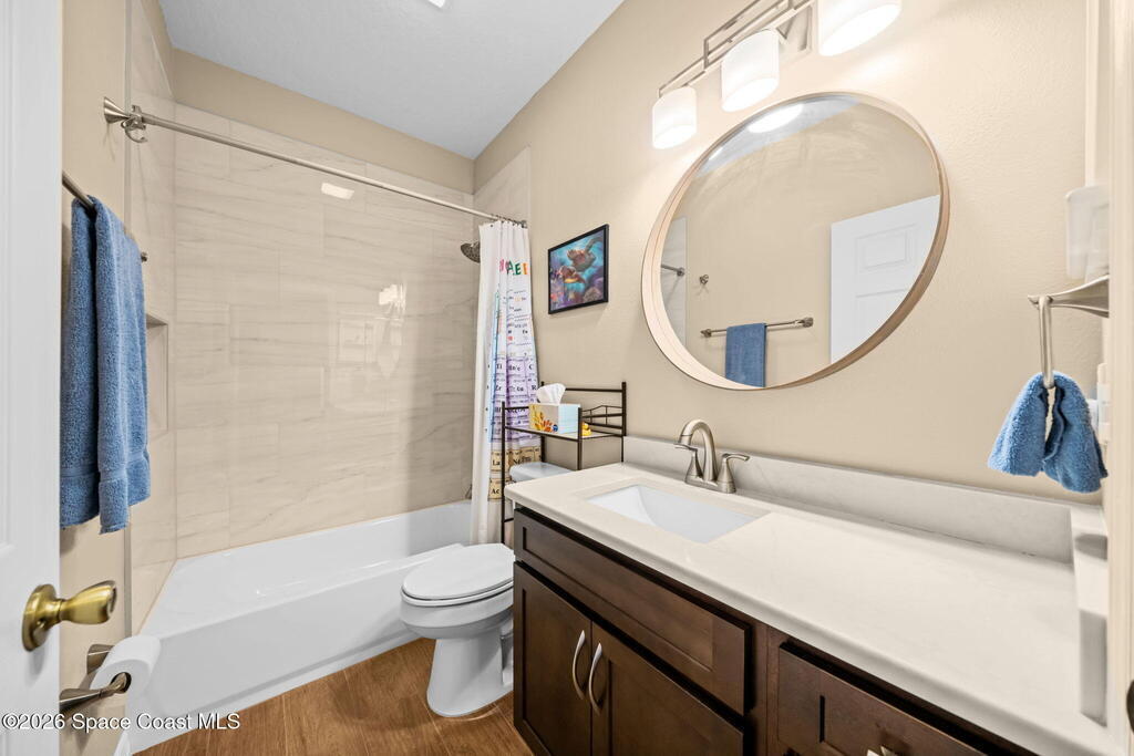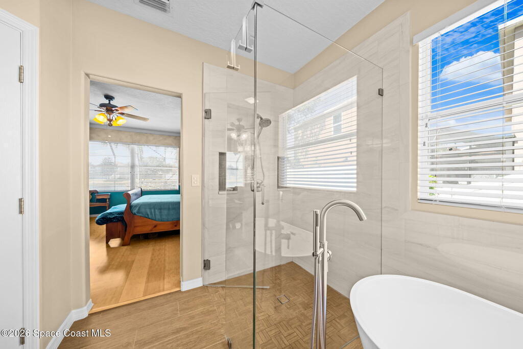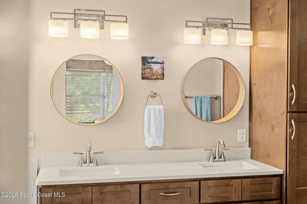 Welcome to lakefront living at its finest in the desirable Grand Haven community of North Melbourne!This beautifully updated 4-bedroom, 2-bath, pool home offers 2,626 square feet of thoughtfully designed living space and an exceptional blend of modern upgrades and timeless Florida charm. Built in 2001, the home features a 2-car garage with an EV Charging Outlet, an amazing solar heated pool/spa/patio area overlooking the large lake, and an inviting layout perfect for both everyday living and entertaining. The heart of the home is the fully updated kitchen, showcasing stunning soft-close cabinetry, quartz countertops, and elegant onyx porcelain tile flooring. Throughout much of the home, you'll find gorgeous new bamboo flooring, adding warmth and style to the living spaces.The primary suite has been completely remodeled and feels like a private spa retreat, featuring new cabinetry, quartz countertops, tile flooring, a luxurious soaking tub, and a glass-enclosed walk-in shower.