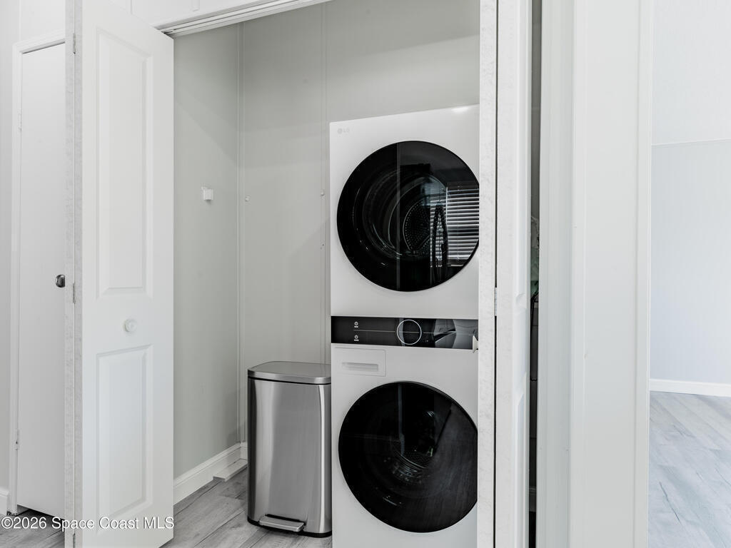 - Equipment/AppliancesElectric Range, Electric Water Heater, Microwave, Refrigerator and Washer/Dryer Stacked