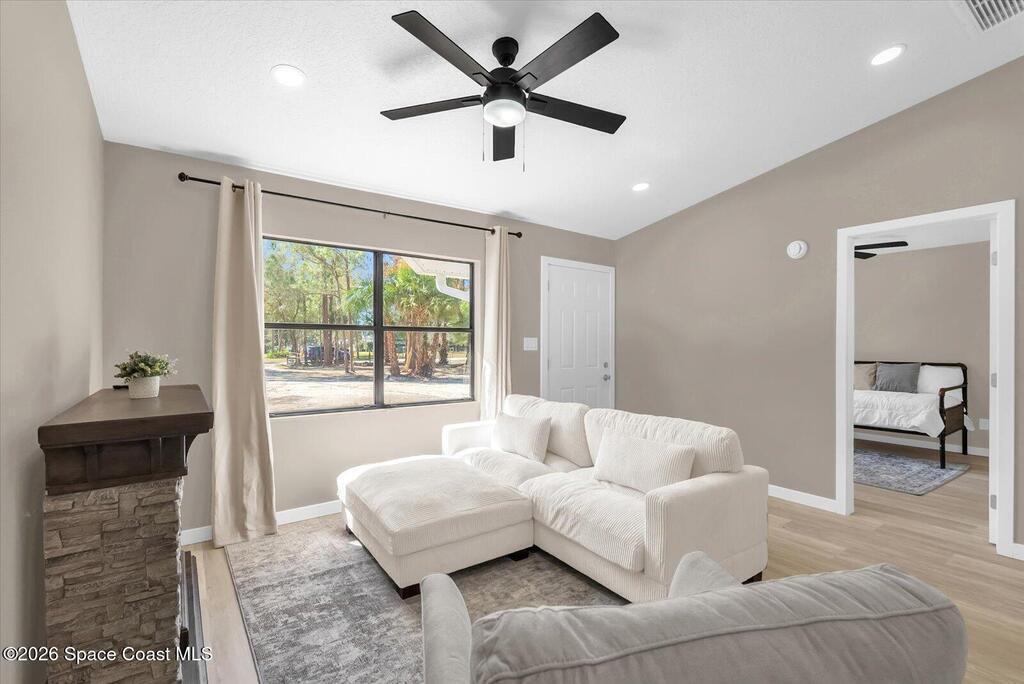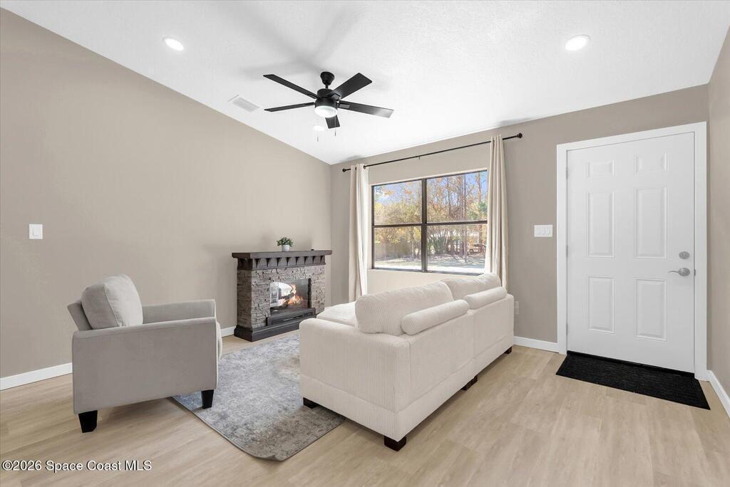 Discover the perfect blend of modern comfort and country freedom in this beautifully remodeled 3-bedroom, 2-bath 1345 sq ft home on a full acre.Fresh, contemporary interior featuring new granite countertops, brand-new appliances, 42 inch upper cabinets & updated finishes throughout. Enjoy peace of mind with a new A/C system & new ductwork and a roof replaced in 2018.Outside, the expansive one-acre lot offers endless possibilities: 22 x 24 garage concrete pad in backyard is ready for your new garage. Horses and farm animals are allowed, making this property perfect for those seeking a small homestead, hobby farm, or simply room to breathe and grow. With no HOA, you'll enjoy the freedom to truly make this property your own. 20 miles from Cocoa Beach and 21 miles from Kennedy Space Center, Blue Origin & SpaceX. Come see today!
