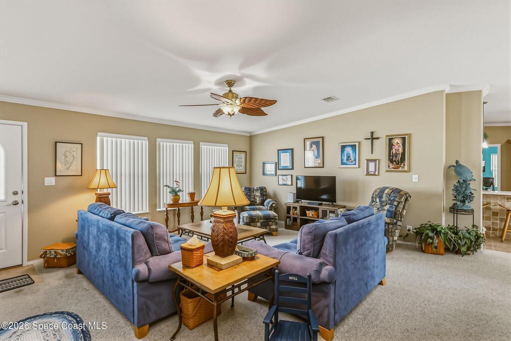 Don't miss this spacious 3-bedroom, 2-bathroom home offering 2,040 square feet of well-designed living space in the amenity-rich Barefoot Bay community. Built to last with 2x6 framing and brick skirting (just a couple examples of the premium construction practices used), this well-constructed Palm Harbor home also features a 2021 roof and a new A/C installed in 2025. The large kitchen includes stainless steel appliances, corian countertops, abundant cabinetry, and flows generously into the surrounding living areas. The primary suite offers a newly remodeled walk-in shower, attached flex space which is ideal for an office or sitting area, and a secure safe room securely tucked away off the roomy walk-in closet. The rear den provides additional flex space, can you say hobby or workout room? Even the laundry room boasts plenty of space! To top it off, this gem backs up to a nature preserve, making the backyard a perfect place for a private patio, to enjoy your quiet mornings or evenings.