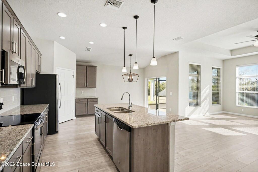 Seller to install BRAND NEW ROOF prior to closing. Impeccably maintained and truly showing like new, this stunning West Melbourne home backs to a serene preserve, offering rare privacy with no rear neighbors. This move-in ready floor plan features a stone-accented exterior, split-bedroom design, and bright, open living spaces ideal for everyday comfort and entertaining. The kitchen showcases granite countertops and a walk-in pantry, flowing seamlessly into the main living areas. The spacious primary suite offers a spa-like bath with soaking tub, separate shower, dual vanities, and walk-in closet. Enjoy upgraded finishes throughout and convenient access to parks, shopping, dining, and I-95.