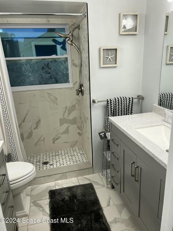 Upscale home completely remodeled in the heart of Melbourne. The best thing next to a brand new home is one that was lovingly renovated with attention to detail. Centrally located and minutes to the beach. Shopping, banks, and restaurants are within a mile. Stunning 4 bedroom, 3 full bathrooms with a modern design and functional floorplan you can't help but love. Light and bright, this property has been tastefully updated with high end upgrades from top to bottom. Keyless entry, new LVP flooring throughout main living areas, new 18'' tile in Gourmet kitchen with new stainless appliances, modern bathrooms , A/C, water heater and roof replaced recently. some new doors and windows, new stairs, new garage doors. new front door. Master bedroom upstairs. Spacious back yard, paver sidewalks. Turn key ready. Close to downtown Eau Gallie Art District, Wickham Park and Eastern Florida State