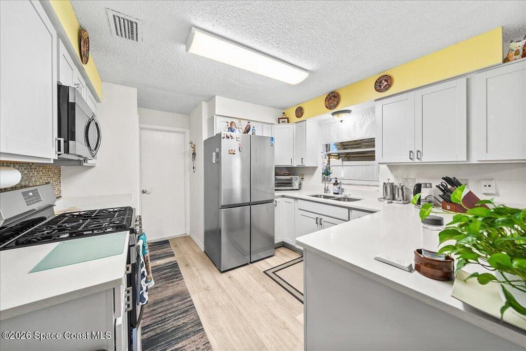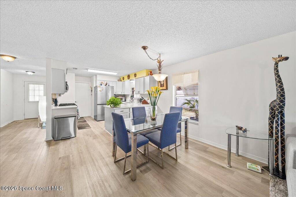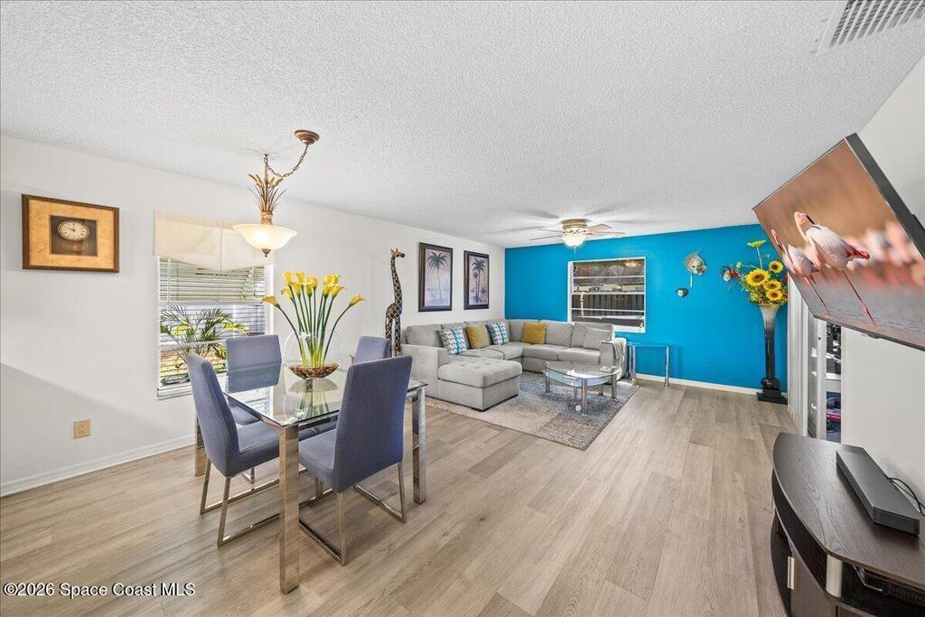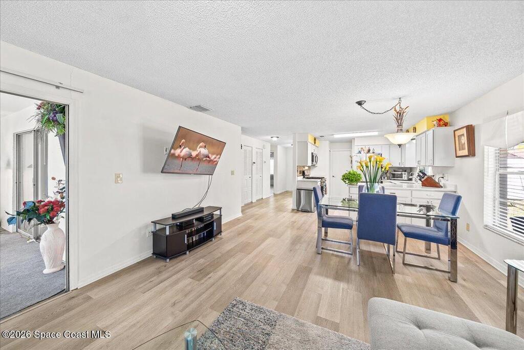 Welcome to this beautifully updated 2-bedroom, 2-bath, 1-car garage half duplex located in the heart of Melbourne on a quiet, tree-lined street with sidewalks and charm throughout. Since its last sale, this home has seen several key upgrades including an updated kitchen, new ductwork throughout the home, and updated flooring in the main living areas, making it move-in ready!Step inside to a welcoming foyer that opens into a spacious family room with an easy, open layout ideal for everyday living and entertaining. The updated kitchen overlooks the dining and living areas, creating a bright and connected space. Sliding glass doors from both the family room and primary bedroom lead to an enclosed lanai -- the perfect spot for morning coffee or evening relaxation -- overlooking a private fenced yard.Whether you're a first-time buyer, downsizing, or looking for a smart investment, this property offers updated features and great layout. Property is being sold As-Is with right to inspect.