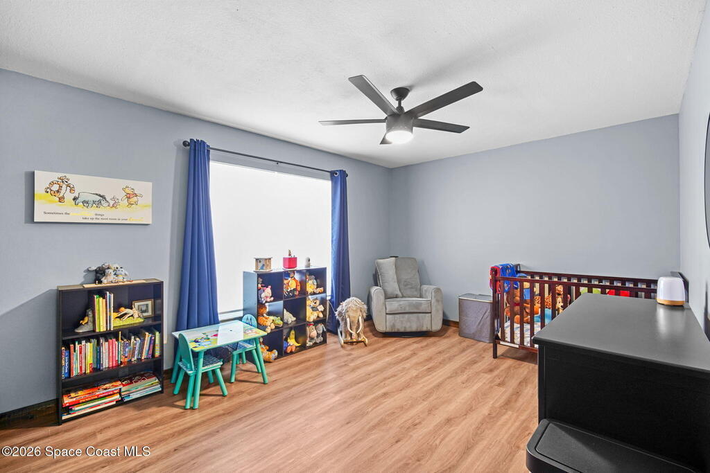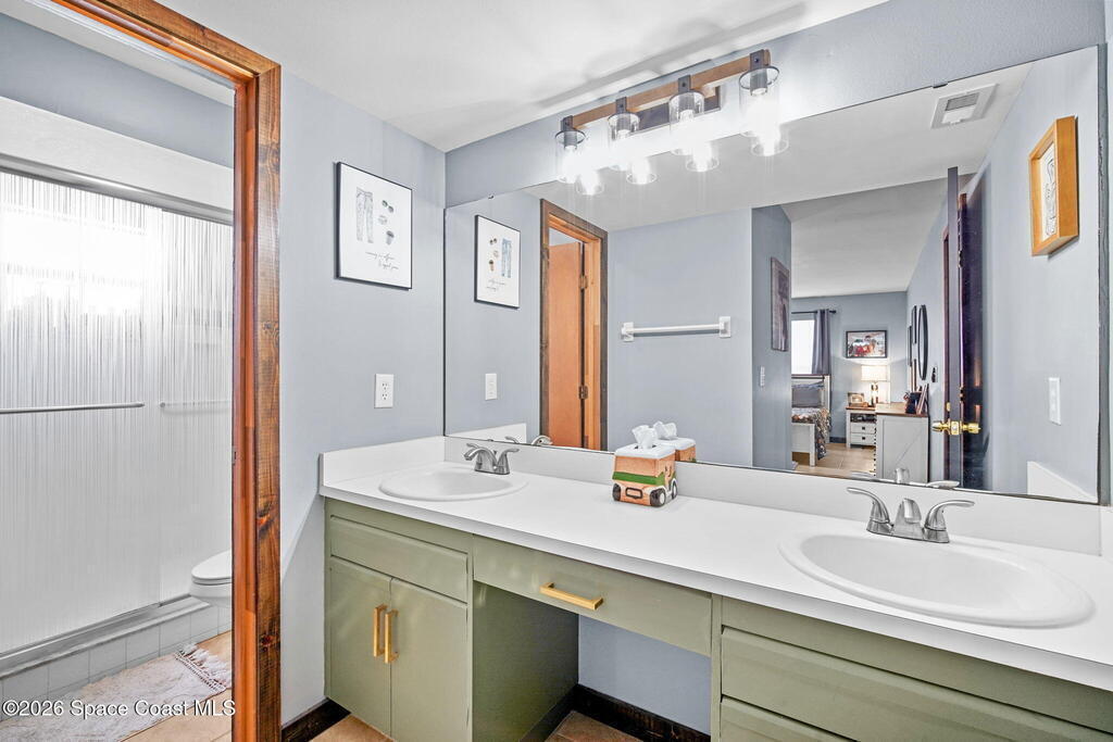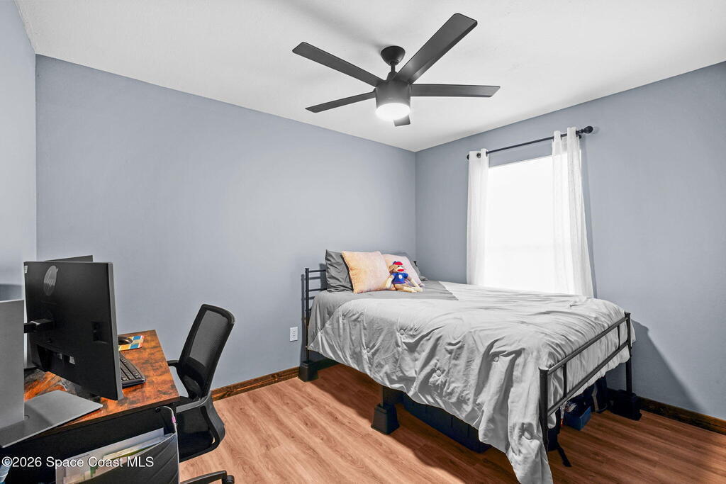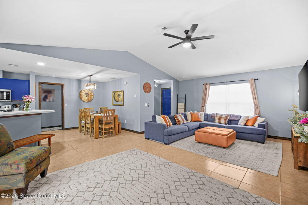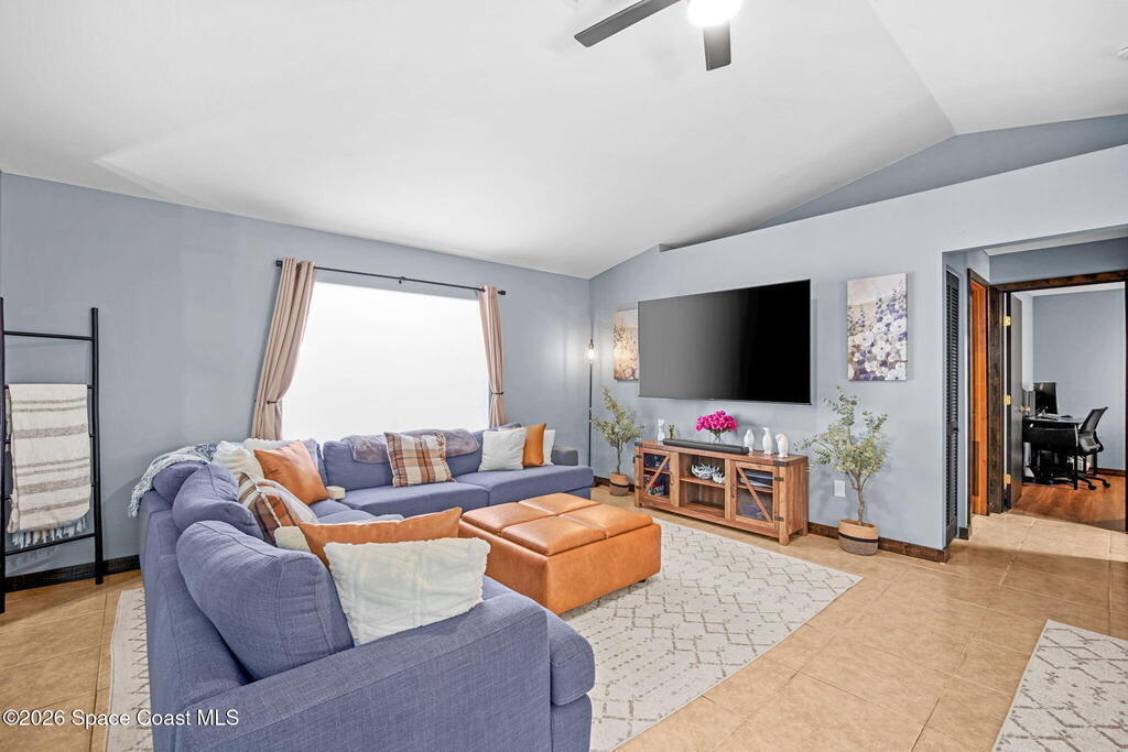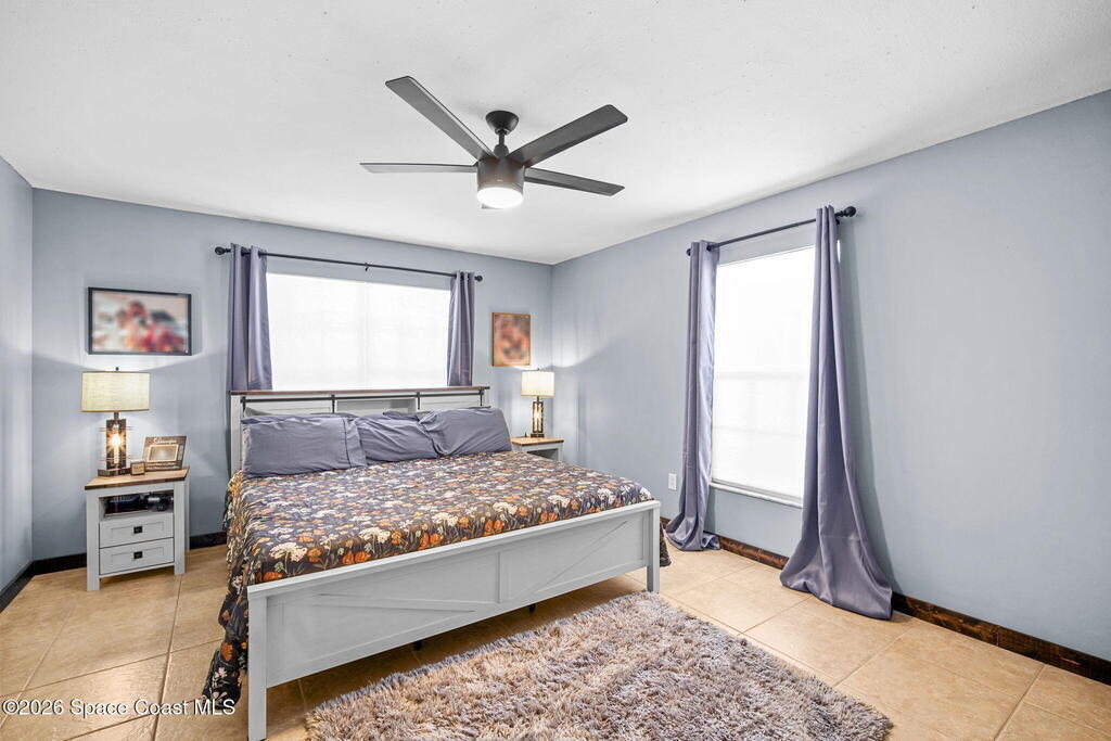 Beautiful, well maintained, home in Port St. John featuring a spacious open floor plan with great room, dining area, and bright eat-in kitchen with sliders to a screened lanai. Recent upgrades include popcorn ceiling removal, fresh interior paint, new lighting, and modern ceiling fans throughout. Split-bedroom layout offers a generous owner's suite with walk-in closet, double vanities, and walk-in shower. Tile and laminate flooring provide easy maintenance. Relax on the lanai overlooking a large fenced backyard with powered garden shed, no rear neighbors, and plenty of room for a pool. Roof 2021, AC 2019, range 2023. Convenient to schools and I-95 for easy access to Orlando and area attractions. Move-in ready and waiting for you!