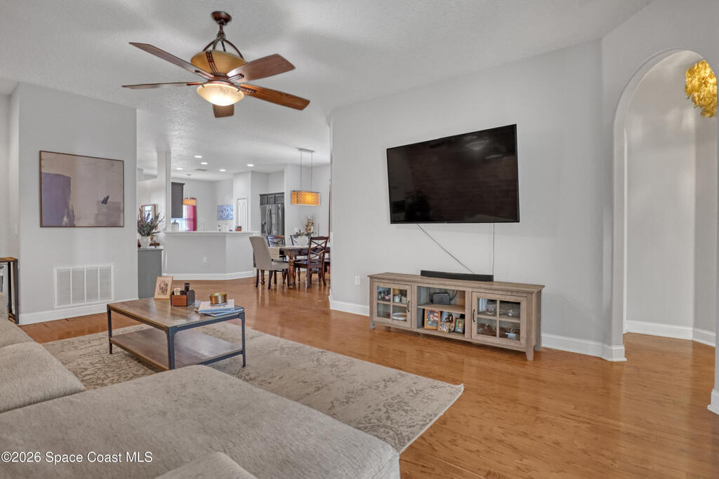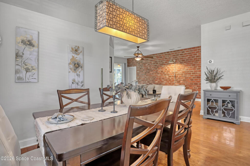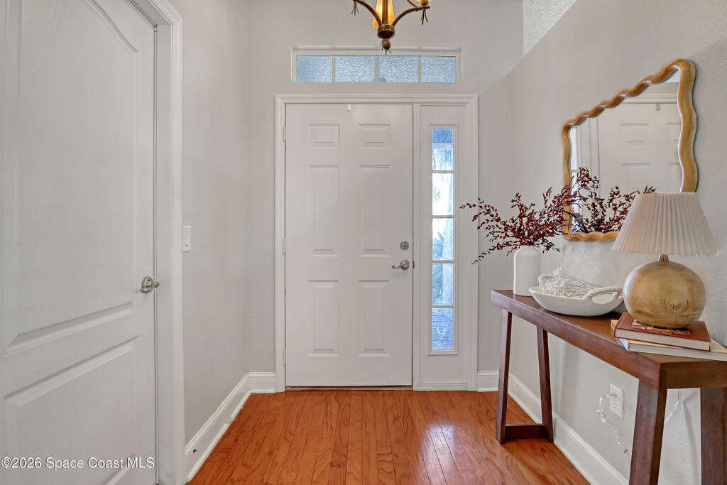 Welcome to you new home, Perfectly sized and located in one of the most desirable communities in Brevard County, this beautiful 3-bedroom, 2-bath home offers beautiful custom finishes that will wow your guests. Inside, you'll love the blend of formal and informal living spaces, ideal for both entertaining and everyday comfort. The split-bedroom floor plan provides privacy, while the hardwood flooring adds warmth and character throughout. An additional 200+ square feet of Florida room living space gives you flexibility for a home office, media room, playroom, or creative retreat. And then there's the backyard...Your private paradise features elegant pavers, a tranquil water fountain, and lush landscaping that creates the perfect balance of privacy and fun. Whether hosting friends or enjoying a quiet evening under the stars, this outdoor space truly speaks for itself. Phillips Landing residents enjoy access to a community pool, and playground. Located Minutes from I95 and the Beach.