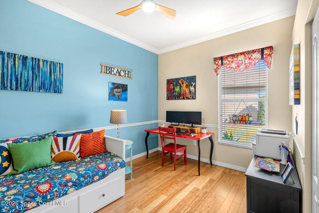 Preserve-backed perfection meets everyday function in this fully updated 4 bed + office, 3 bath pool home on a private .26-acre lot. A 2024 kitchen remodel showcases granite countertops & a layout designed for seamless flow into open living spaces framed by crown molding added in 2023. All 3 baths were remodeled in 2024 with cohesive granite finishes, while the 2024 laundry upgrade adds style & efficiency. Tile & bamboo/wood flooring run throughout, blending warmth with durability. Outside, a solar-heated pool with rock waterfall feature anchors the expansive screened enclosure, complete with a covered lanai, hanging swing & generous indoor-outdoor living. PVC fencing, 2024 hardscape/stone surrounds & 2025 exterior lighting elevate curb appeal, all complemented by a spacious 3-car garage.