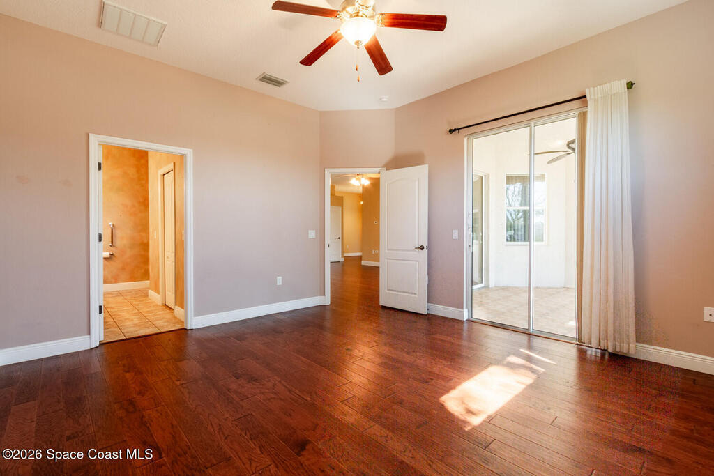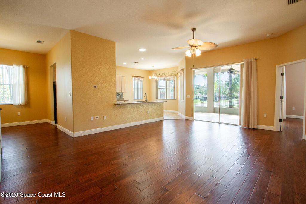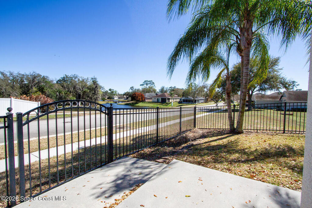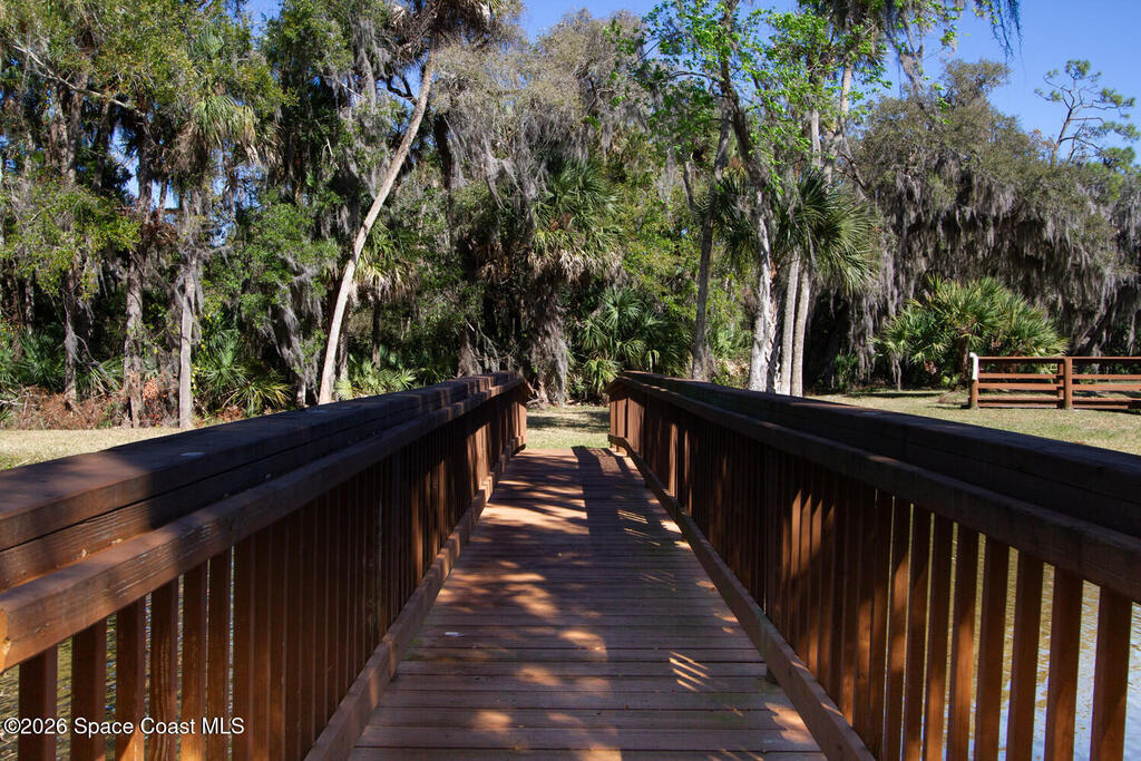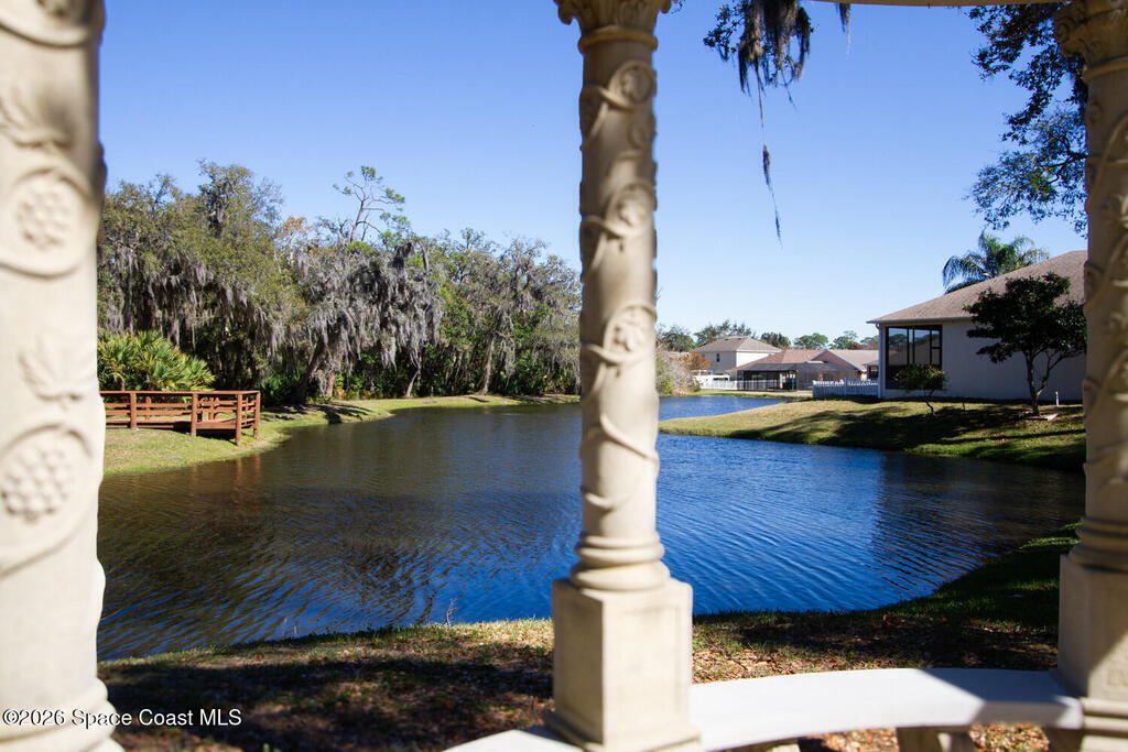 Beautifully upgraded 3BR/2BA home with 1,725 living sq ft (2,500 total) on a premium corner lot in Sisson Meadows. Light and bright open floor plan with real scraped wood flooring throughout and tile in wet areas. Eat-in kitchen features real wood cabinets, granite countertops, stainless appliances, and water views. Kitchen opens to spacious great room with sliders to tiled, screened lanai overlooking large pond and bridge. Owner's suite offers lanai access, walk-in closet, tiled shower, and double vanity. Split bedroom plan. For added security there are storm shutters for every window and door and a whole house 22 KW Generac generator, (Installed 2021) Conveniently located near shopping, the Kennedy Space Center, Interstate 95, State Road 528, the Indian River, and area beaches.