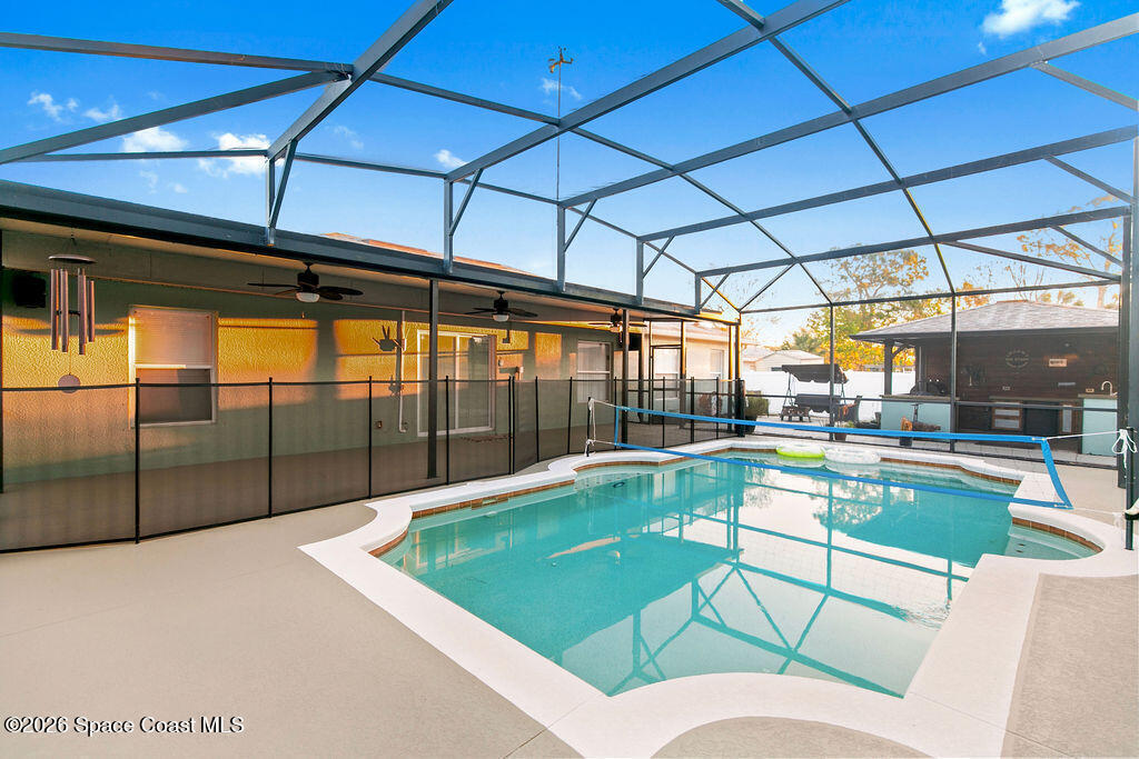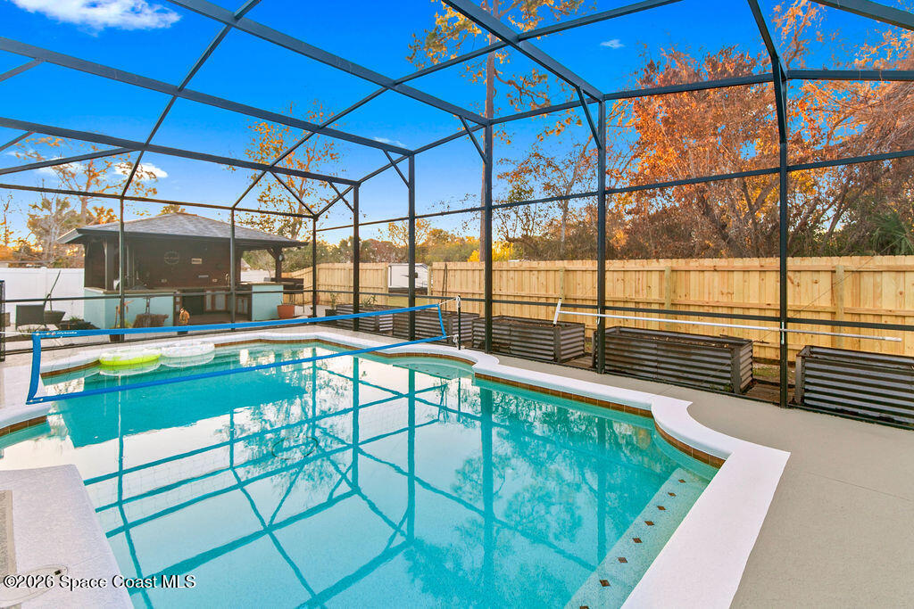 This 3-bedroom, 2-bath pool home is truly what dreams are made of! Every corner thoughtfully designed for comfort, style, and unforgettable gatherings.Step out back and prepare to fall in love. The backyard is the ultimate showstopper, an entertainer's paradise that feels like your very own private resort. Fire up the grill in your amazing outdoor kitchen, lounge under the Florida sunshine, or unwind in the beautiful screened-in pool that begs for cannonballs, night swims, and weekend hangouts.The spacious, stone-accented patio offers the perfect spot for a firepit or a cozy outdoor living space. And for the green thumbs-get excited,because the property features huge galvanized garden beds, ready to bring your homegrown dreams to life.Inside, the fun continues. The spacious kitchen was crafted for the true host at heart, featuring an oversized island equipped with two dedicated 20-amp circuits, plus under-cabinet lighting that adds the perfect ambiance for cooking or entertaining!