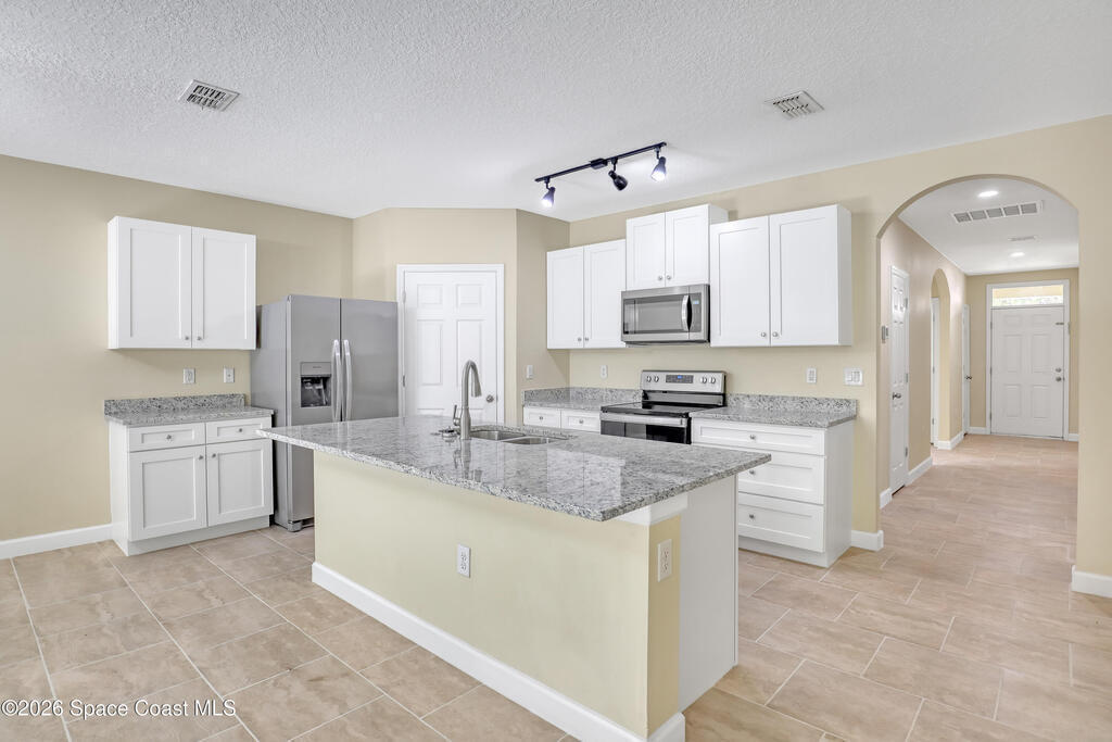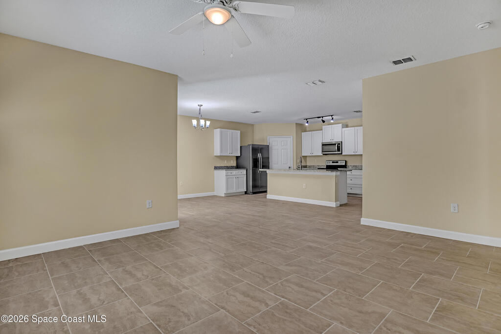 Welcome to 2605 Falcon Lane, Mims, Florida--a fresh, move-in-ready four-bedroom, two-bath charmer that's just been renovated. This solid concrete-block single-family home clocks in at about eighteen hundred thirty square feet, built in twenty nineteen. Step inside: the heart of the place is that brand-new kitchen--think sleek updated tile, shiny stainless appliances, a big island, and tons of light pouring in. It's open-concept, flows right into the living area, perfect for cooking while chatting. Fresh tile runs through the main spaces too, giving everything that crisp, just-finished vibe. The primary suite's a retreat--double vanity, walk-in shower, extra closets. Split bedrooms keep things private, and there's a screened porch out back for lazy Florida evenings. Two-car garage, central air, all the basics upgraded. Quiet neighborhood, easy access to Titusville or the beaches.