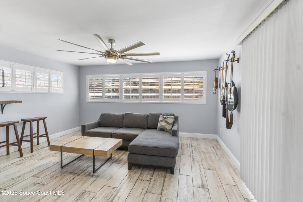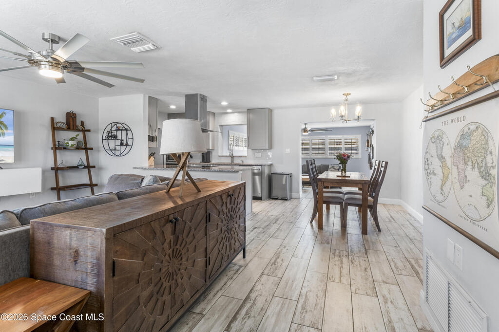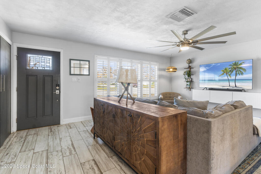 Coastal living in a prime location! Situated in a highly desirable neighborhood just a short walk to Gleason Park, and only minutes from the beaches and river access. Inside you'll find stylish driftwood plank ceramic flooring, plantation shutters, and two spacious living areas offering flexible space for relaxing or entertaining. The fully fenced yard features newly installed double gates perfect for storing a boat, trailer, or other recreational toys. A great opportunity for a full-time residence, coastal getaway, or investment property in a sought-after area.