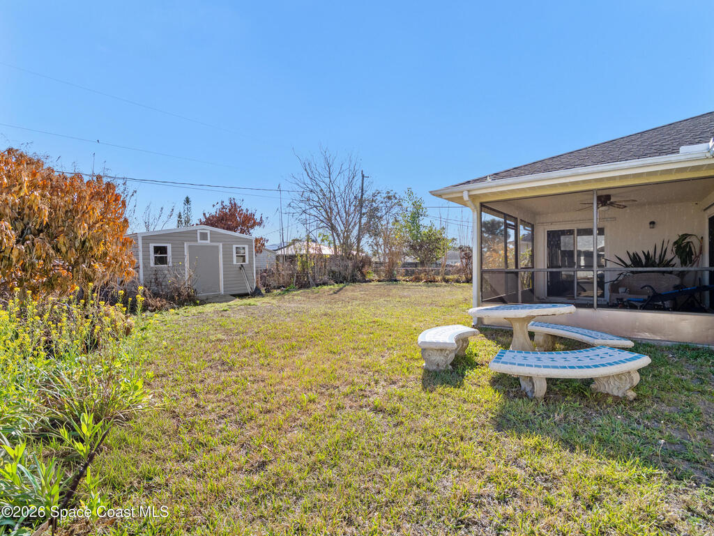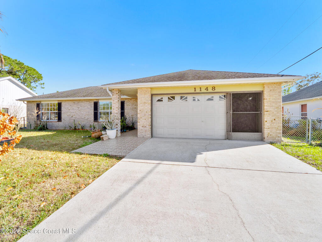 Solid home in a nice neighborhood offering a warm, inviting great-room layout, split floor plan, and tile and wood floors throughout for easy maintenance. The property sits high and dry on a 0.23-acre gardener's paradise filled with mature tropical fruit trees, creating a peaceful outdoor retreat. Recent upgrades include a new water heater (2023), new heat-pump A/C (2023), and new garage door opener (2025). The kitchen features granite countertops along with a new dishwasher and range hood (2026). Hurricane shutters add peace of mind and insurance savings. With 1,464 sq ft under air, the home also includes a fenced yard, tranquil 1810 screened porch, large storage shed, CITY WATER, NO HOA, and an extended driveway ideal for extra parking or guests. Conveniently located near St. John's Heritage Parkway, I-95, restaurants, and shopping. Dial or text for more inforamtion or to schedule a private showing!