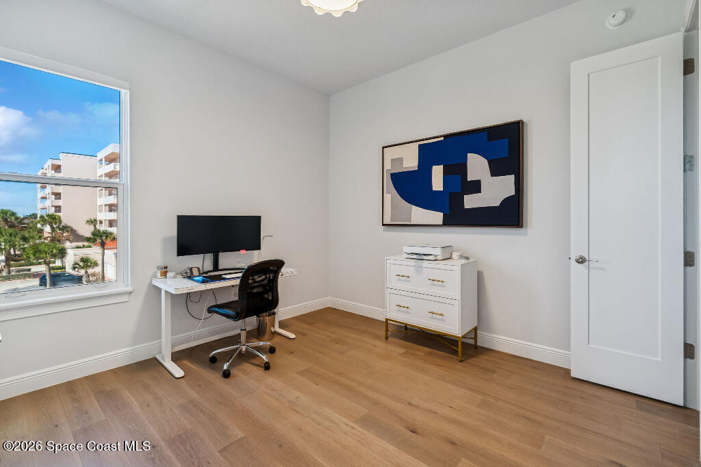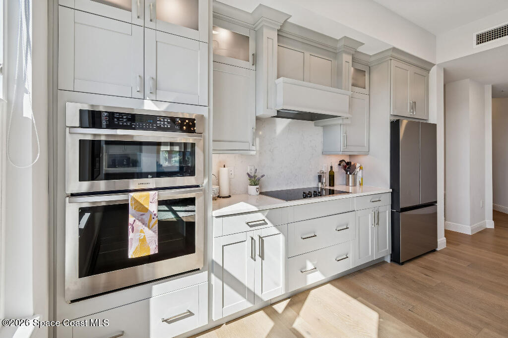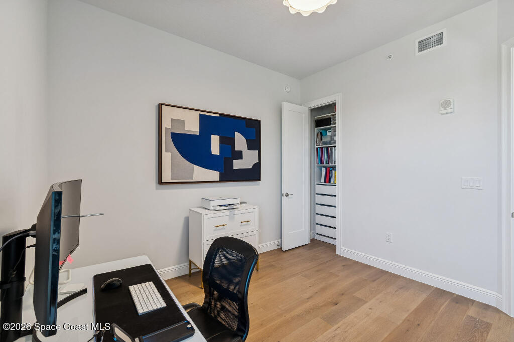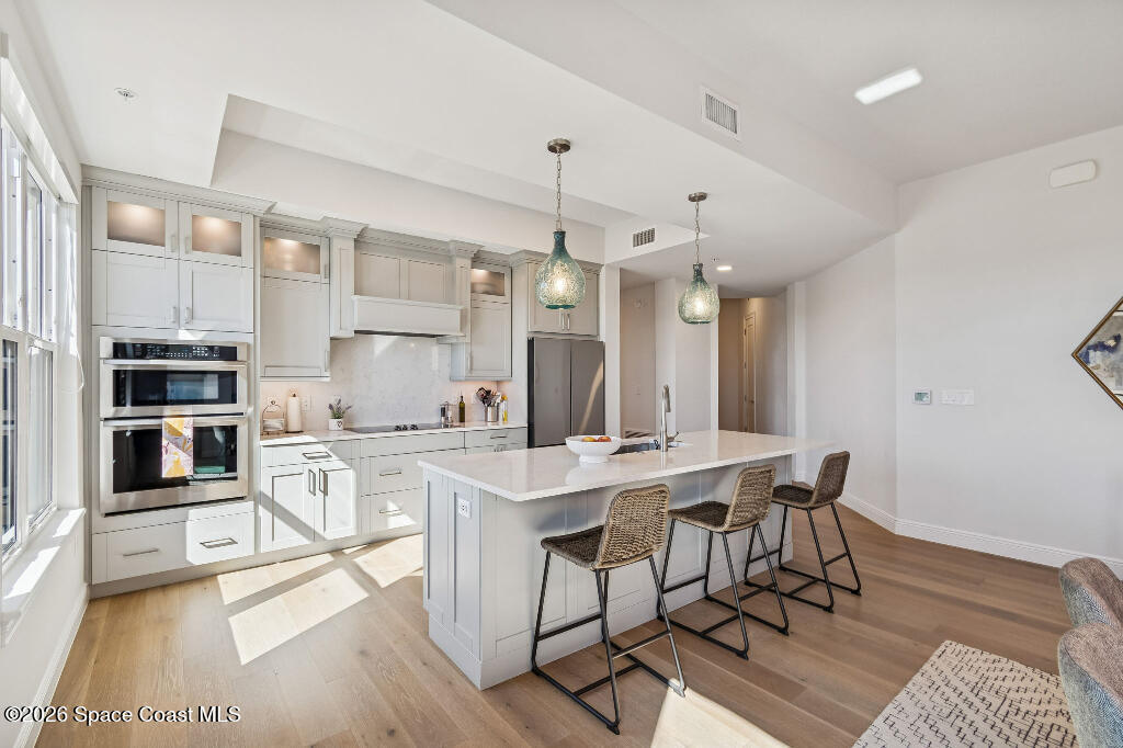 Experience luxury coastal living in this stunning 3-bedroom, 2-bath ocean-view residence in the luxurious Palm Beach condominium in Indialantic. Built in 2022, this beautifully appointed third-floor condo offers 1,880 square feet of thoughtfully designed living space with abundant natural light from windows on three sides.The open-concept layout flows seamlessly to a private balcony where you can enjoy ocean views and coastal breezes. High-end finishes include quartz countertops, built-in range and microwave, upgraded lighting, custom closet systems, and full hurricane-impact windows plus hurricane shutters on the sliding doors for peace of mind.The spacious primary suite provides comfort and privacy, while two additional bedrooms offer flexibility for guests or a home office. This residence also includes a private garage space with electric car charger hookup and a large, locked storage area in the garage -- a rare and valuable feature.