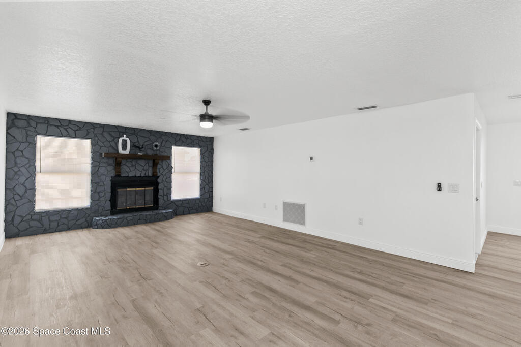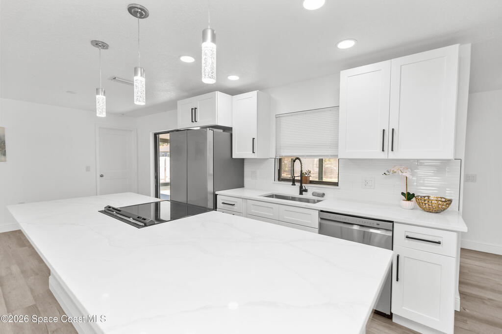 CITY WATER! Step into this beautifully renovated concrete block home offering a modern, move-in ready feel from top to bottom. With a newer roof and A/C, major updates provide peace of mind and long-term value. The open floor plan and spacious layout create a bright, inviting atmosphere perfect for everyday living and entertaining. The fully updated kitchen features stunning quartz countertops, brand-new appliances, updated light fixtures, and stylish finishes throughout. Quartz continues in the bathrooms with new vanities and contemporary upgrades for a cohesive, upscale look. Fresh interior and exterior paint, new flooring, and refreshed landscaping complete the polished presentation. Cozy up by the fireplace and enjoy the convenient location close to restaurants and shopping centers.