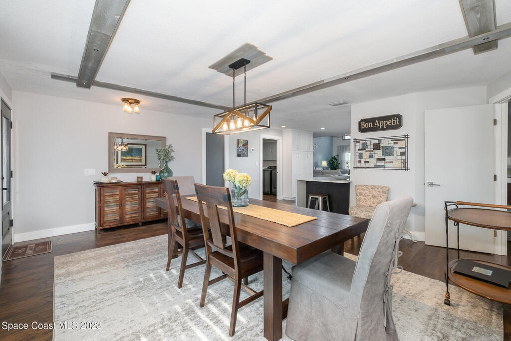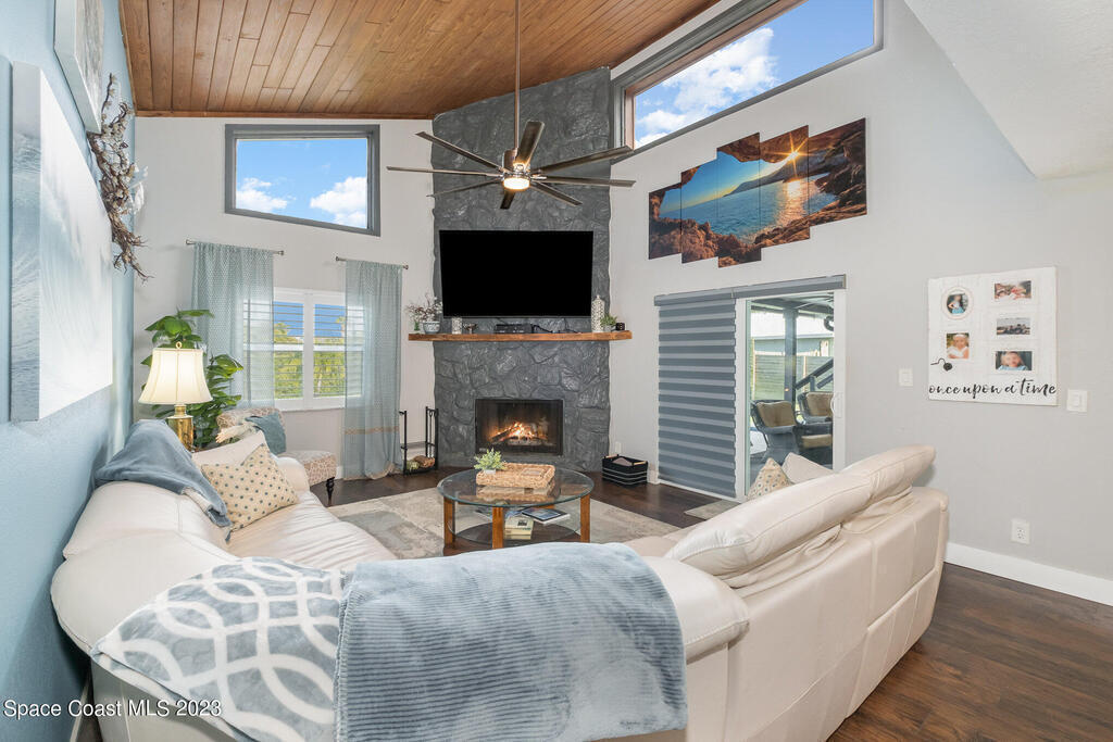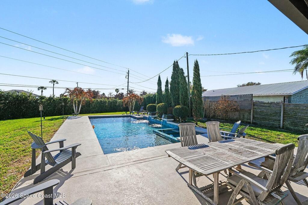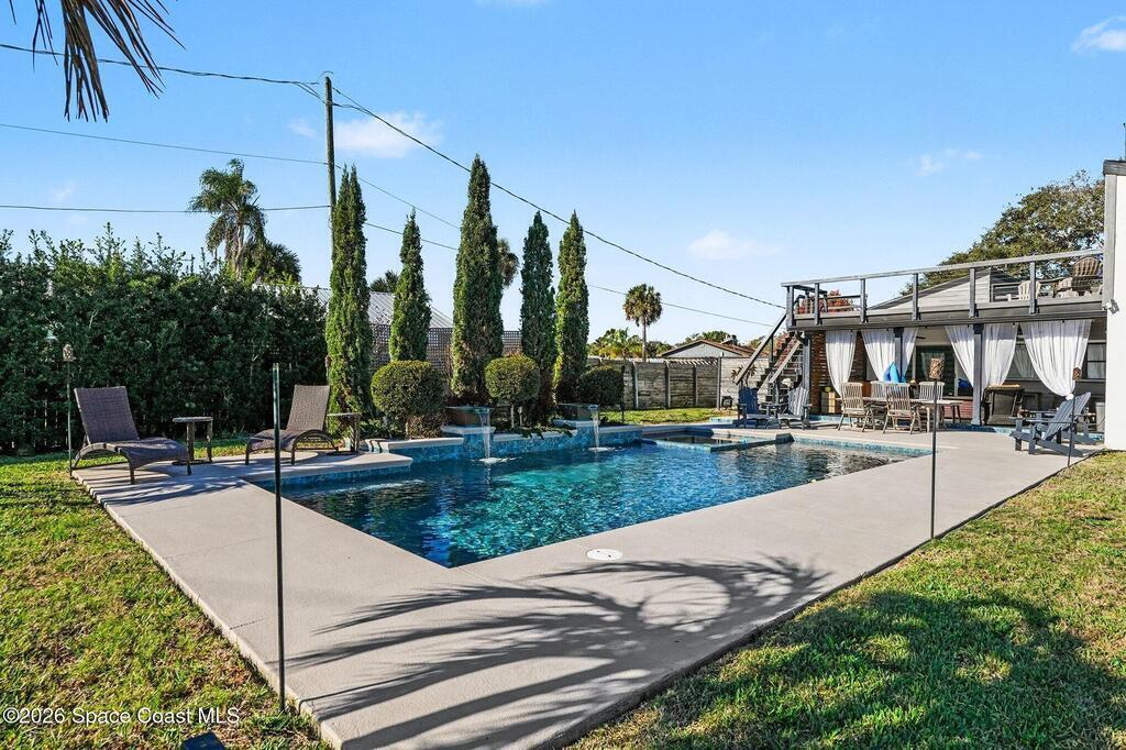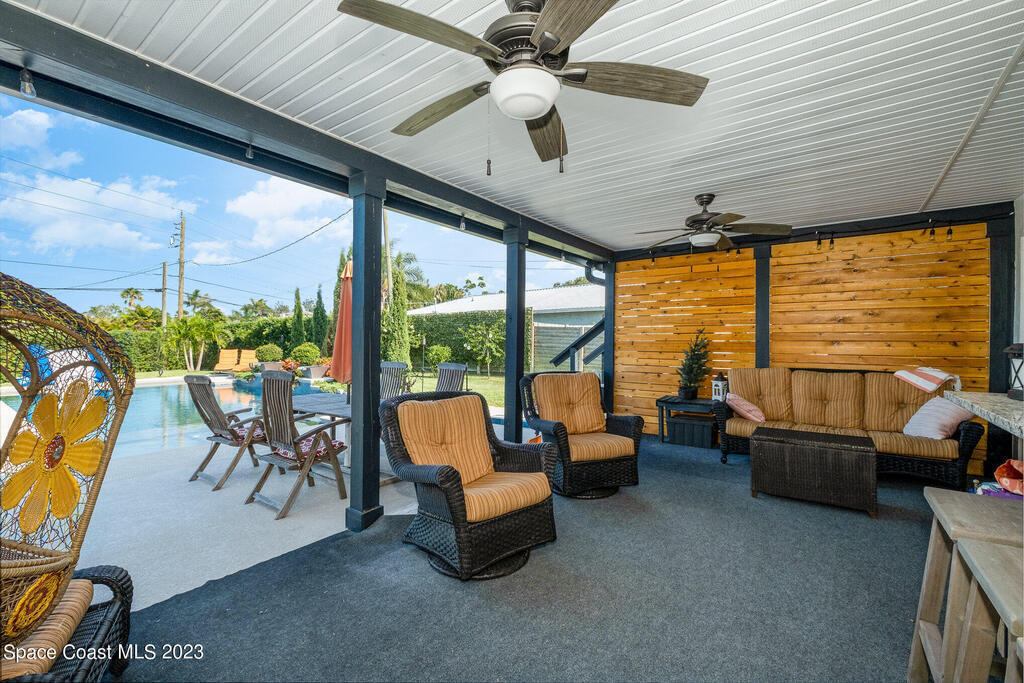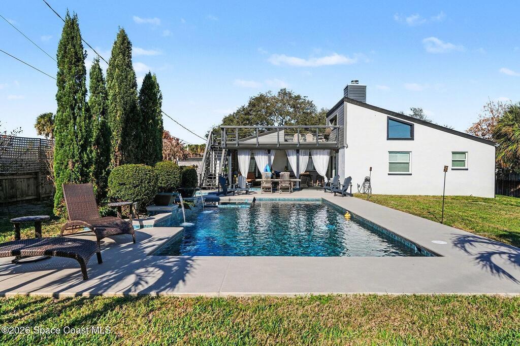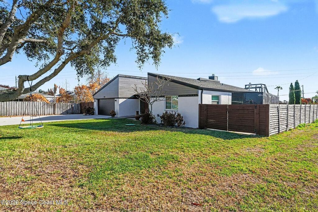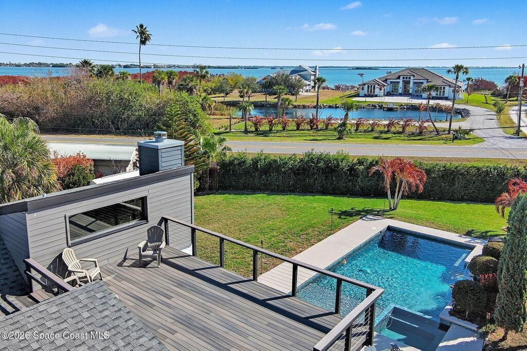This jaw-dropping home is definitely one of a kind and is move-in ready! SEPTIC, TANKLESS WATER HEATER, A/C, PLANTATION SHUTTERS, ROOF, POOL AND PAINT ARE ALL 5 YEARS NEW! Brand new exterior paint in 2025! This home is a completely remodeled mid-century modern home with a dreamy pool and a stunning rooftop deck! This 4 bedroom, 2 bathroom home sits on .46 acre lot and boasts over 2,000 square feet! You will have peace of mind knowing the windows and garage door are hurricane rated. Need parking for your boat or RV? There is a paved parking pad on the side of the home! Natural light flows effortlessly throughout this home and it has been meticulously maintained! Peaceful area, paved road, close to shopping, restaurants, entertainment, fishing, Cocoa beach, Kennedy Space Center, Port Canaveral, Hospitals, Doctors and a quick easy commute to Orlando. Don't miss out on this one! All information listed in the MLS is intended to be accurate but not guaranteed by Broker/Agent/MLS.