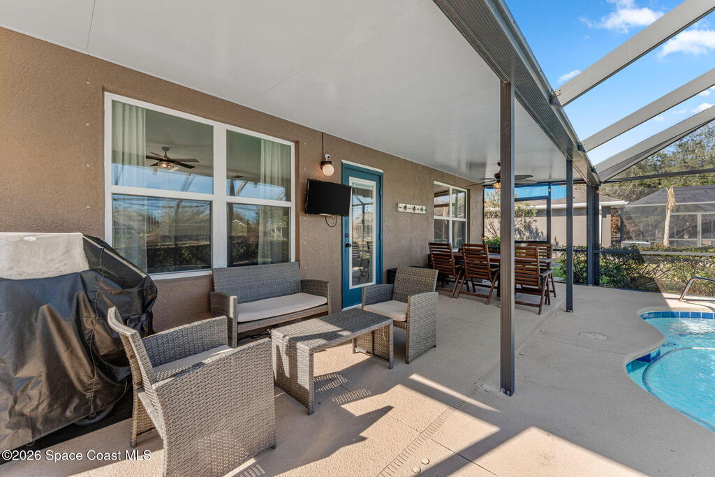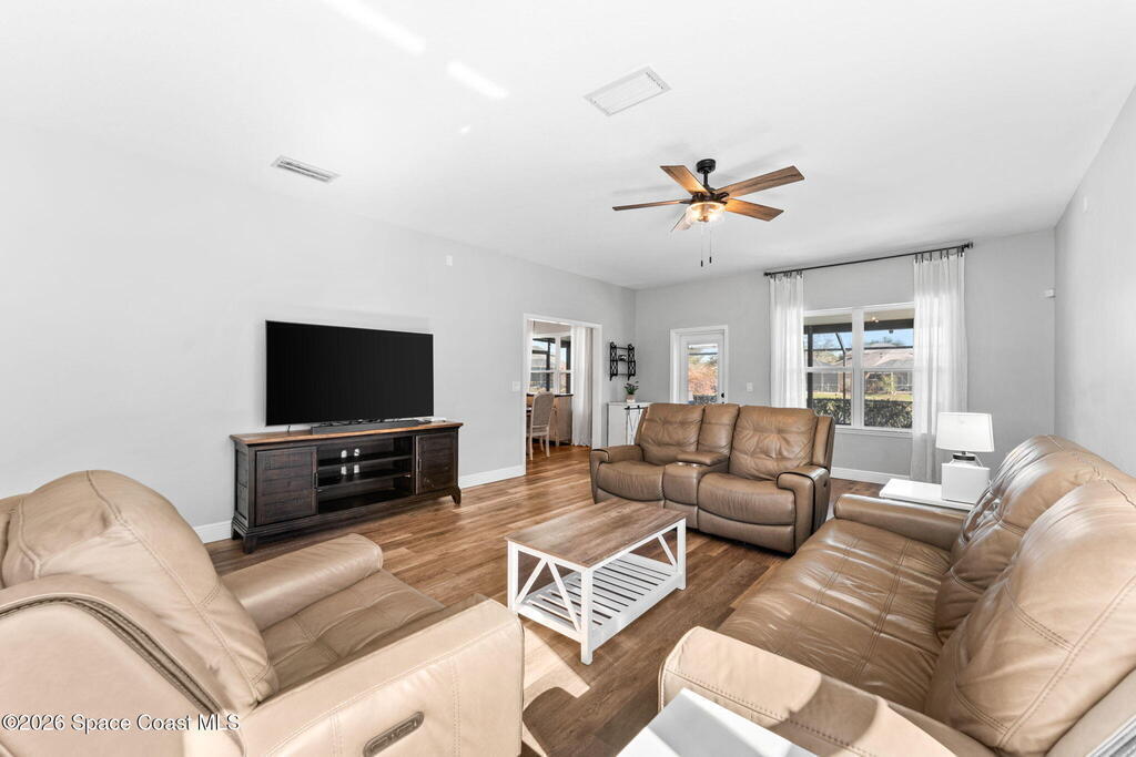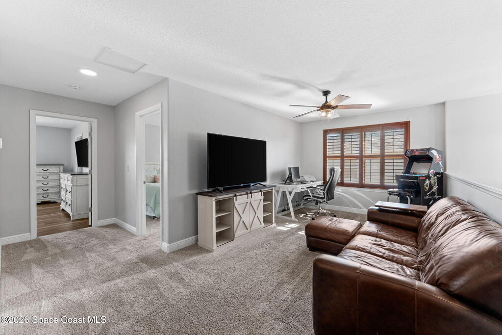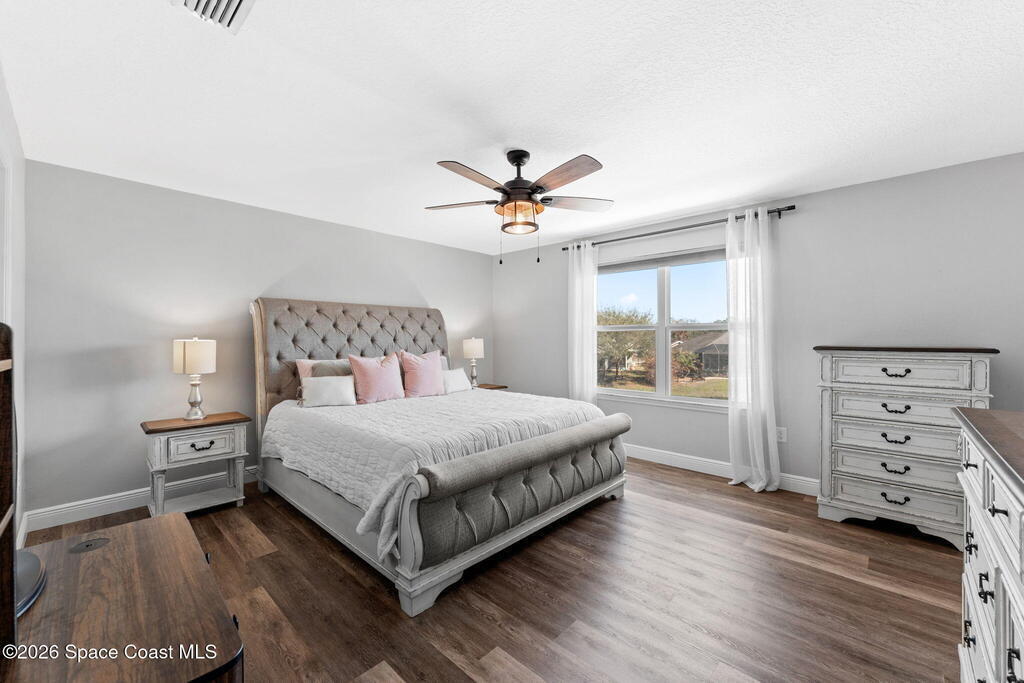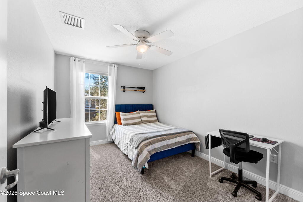 Pool, water views, and a layout that just makes sense! With 4 true bedrooms, 2.5 baths, and an upstairs loft, this home brings together space, updates, and some seriously dope backyard vibes. The kitchen was recently remodeled with quartz countertops and fresh finishes, flowing easily into the main living areas and a dedicated dining space ready for gatherings, holidays, epic board game battles, or dinner with friends and family. Upstairs you'll find the versatile loft along with a spacious primary suite featuring a massive walk-in closet. Updated bathrooms, fresh interior paint, and new flooring keep everything feeling clean and move-in ready. Step outside and the lifestyle kicks in with a private saltwater pool overlooking the water. HVAC replaced in 2026. Storm shutters to help keep insurance costs down. All located in a gated community packed with amenities including a clubhouse, resort-style pool, tennis courts, playground, and more.