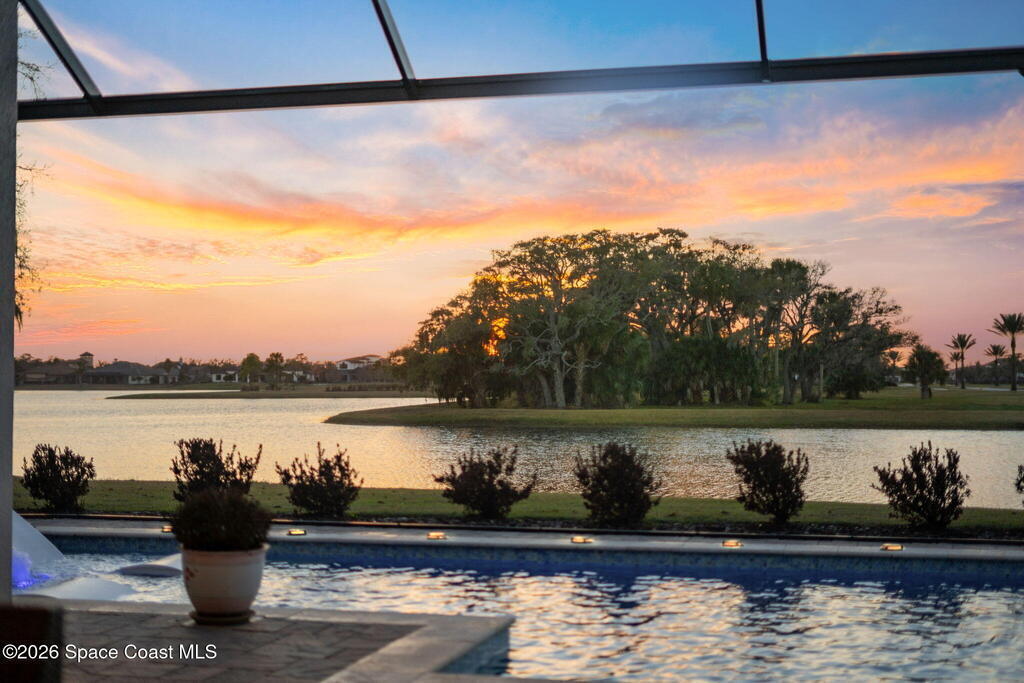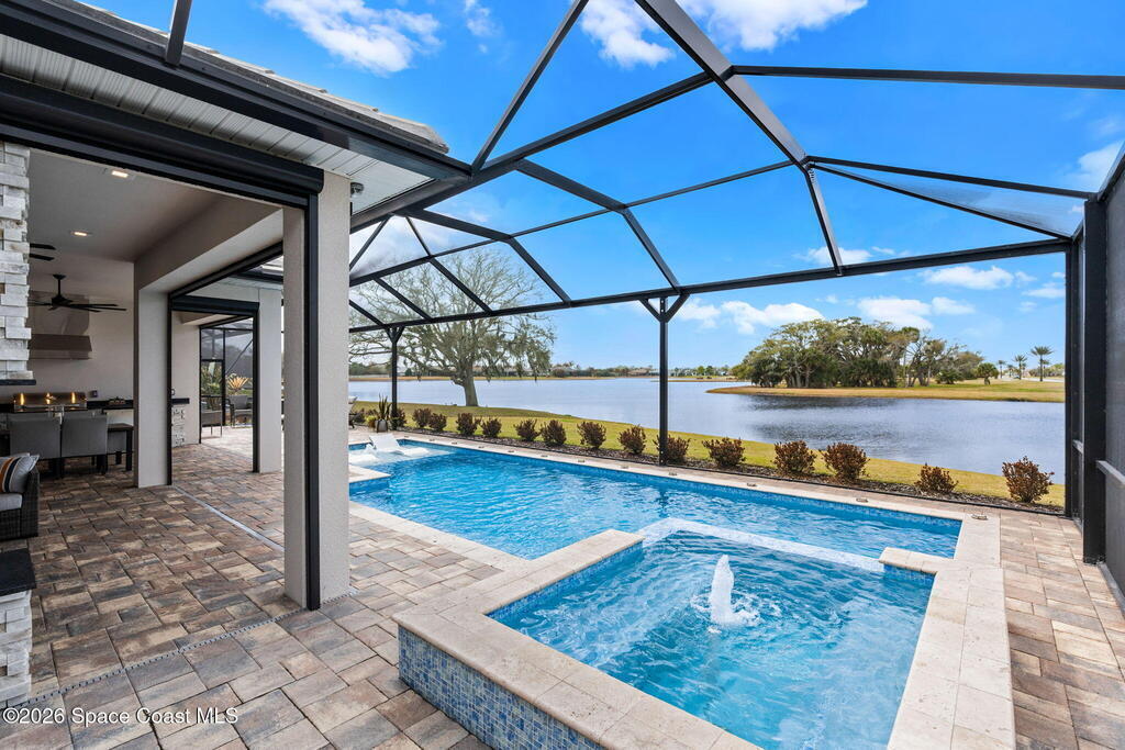 This striking 2023 custom estate in gated Adelaide captures breathtaking lake vistas & delivers an exceptional blend of design, technology & resort-inspired living. Soaring vaulted ceilings crown the open living space anchored by a sleek Dimplex fireplace & a dramatic raised two-level office. The chef's kitchen impresses w/ a fireclay apron sink, illuminated open shelving, pull-out spice storage & a fully customized pantry w/ granite counters & wood shelving. The private primary suite features dual vanities, a seated makeup station & a spa-style bath w/ frameless shower & Toto washlet-ready toilet. Outdoors, a gas-heated saltwater pool & spa showcase travertine coping, Blue Azure pebble finish, glass mosaic tile, tanning shelf, dual water features, color-changing LEDs & 10 therapy jets. A 3-car garage w/ polyaspartic flooring includes EV charging, generator pre-wire & storage racks. Control4 automation, 24 speakers, central vacuum & expansive lake views complete this remarkable estate.