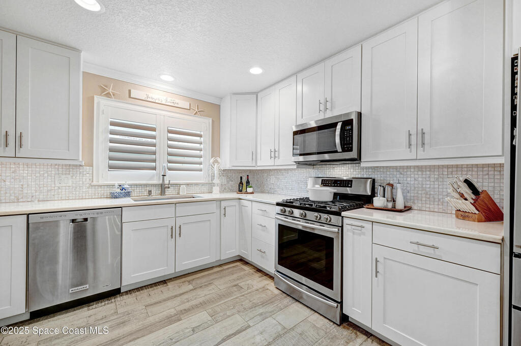 This beautifully renovated home is a short walk to the beach. The renovation and the upgrades are unrivaled. The stove, dryer, hot water heater, fire pit, barbecue grill in the tiki hut, and 400,000 BTU pool heater are all run by natural gas. This home was gutted down to the studs. All electrical and plumbing, INCLUDING UNDERGROUND CAST IRON PIPES, have been upgraded and modernized. Plantation shutters enhance the impact windows throughout the home. Porcelain wood-like tile flows seamlessly through every room. The previously sunken living room has been filled with concrete, creating a single, smooth level for the entire family's living space. Quartzite countertops in the kitchen and bathrooms, along with white, soft-close cabinetry, provide a simple, modern look. Kitchen exhausts to the outside. Lighting is recessed throughout the main living space, and each room, including the main bathroom, has ceiling fans. All exterior doors have been replaced with impact doors.