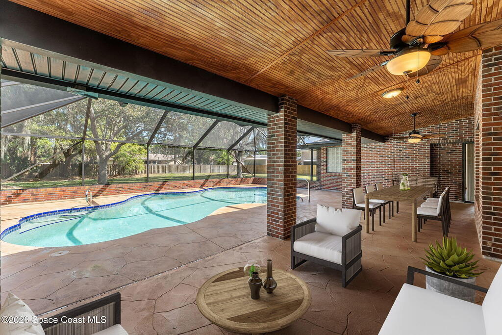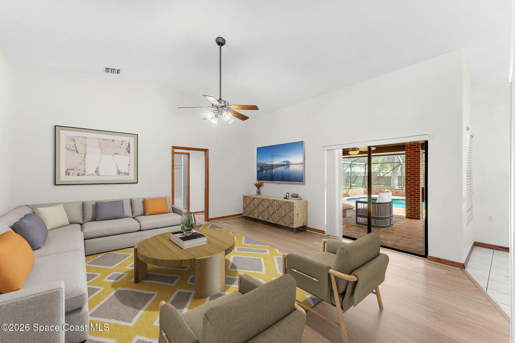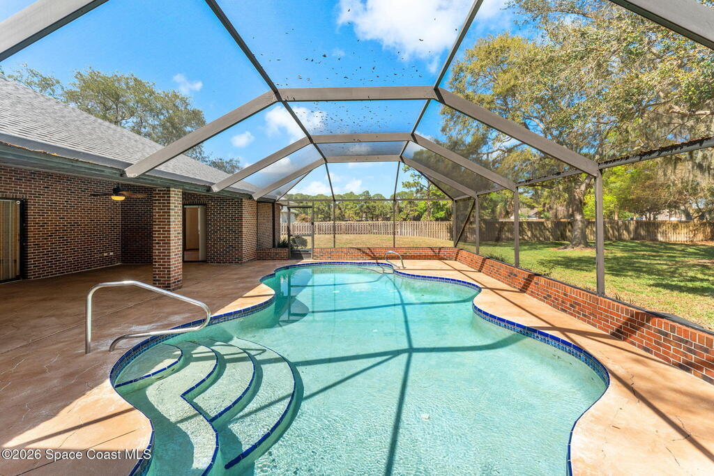 Space, freedom & an incredible indoor-outdoor lifestyle define this 1.01-acre property designed for easy movement & everyday comfort. A screened pool w/stamped concrete patio, large covered lanai & fully fenced HUGE backyard create endless room to relax or entertain. Inside, the thoughtful floor plan features wide passages, open spaces & vaulted ceilings for effortless flow. A separate living area offers flexibility for a pool table, gaming space or additional lounge area, while the welcoming family room features built-in shelving & a slider to the pool. The kitchen offers abundant counters, cabinets & spacious dining. The primary suite is oversized w/private pool access, BIG walk-in closet & bath w/dual sinks, jetted tub, separate shower & jumbo water closet w/3rd sink. Two additional bedrooms share a hall bath, w/one offering a pool slider.