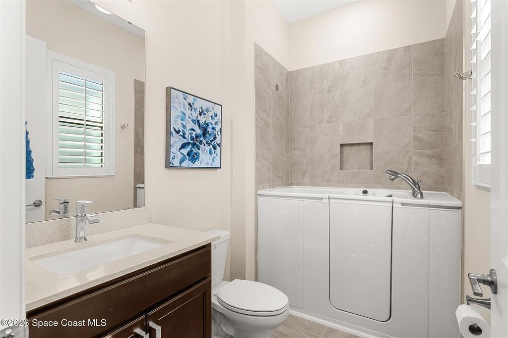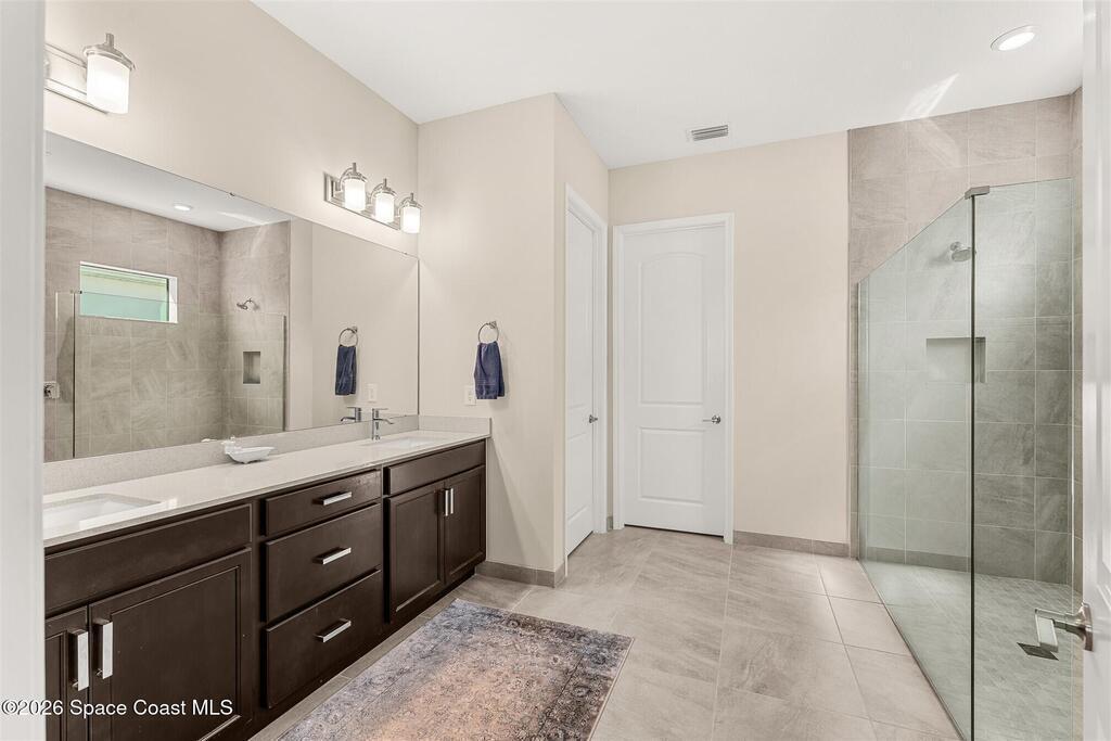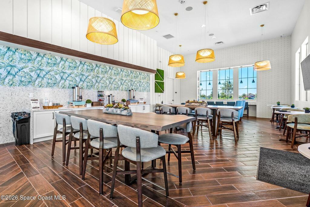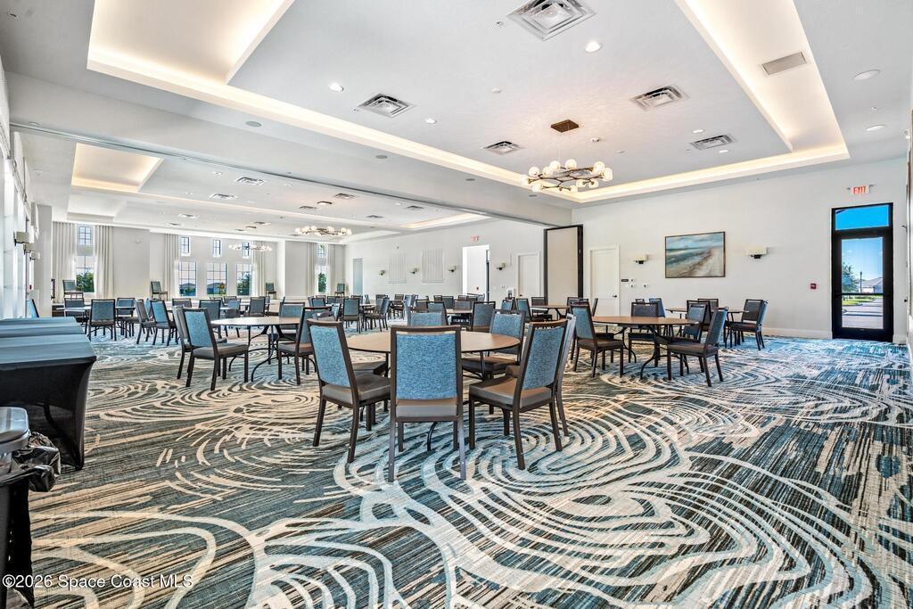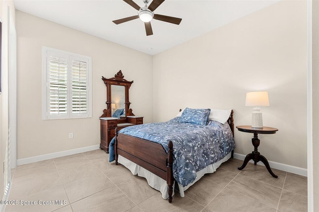 Enjoy waterfront living from this airy 3-bedroom, 4-bath home in the gated 55+ community Bridgewater at Viera. A den/flex room with double doors and closet can easily serve as a fourth bedroom. The kitchen features stainless steel appliances, and an oversized island that opens to the main living area. Triple sliding glass doors fill the home with natural light and lead to a screened lanai overlooking the water--perfect for enjoying both sunrise and sunset. Interior highlights include ceramic tile flooring, plantation shutters, crown molding, recessed LED lighting, upgraded fixtures, and a laundry room with sink and built-in cabinets. The primary suite offers a custom walk-in closet, zero-entry shower, and dual vanities. Guest bedrooms include custom closets and en-suite baths, one with a walk-in Jacuzzi tub. Resort-style amenities include heated pool, fitness center, tennis, pickleball, bocce, billiards, movie theater. HOA includes lawn care, garbage, gated security.