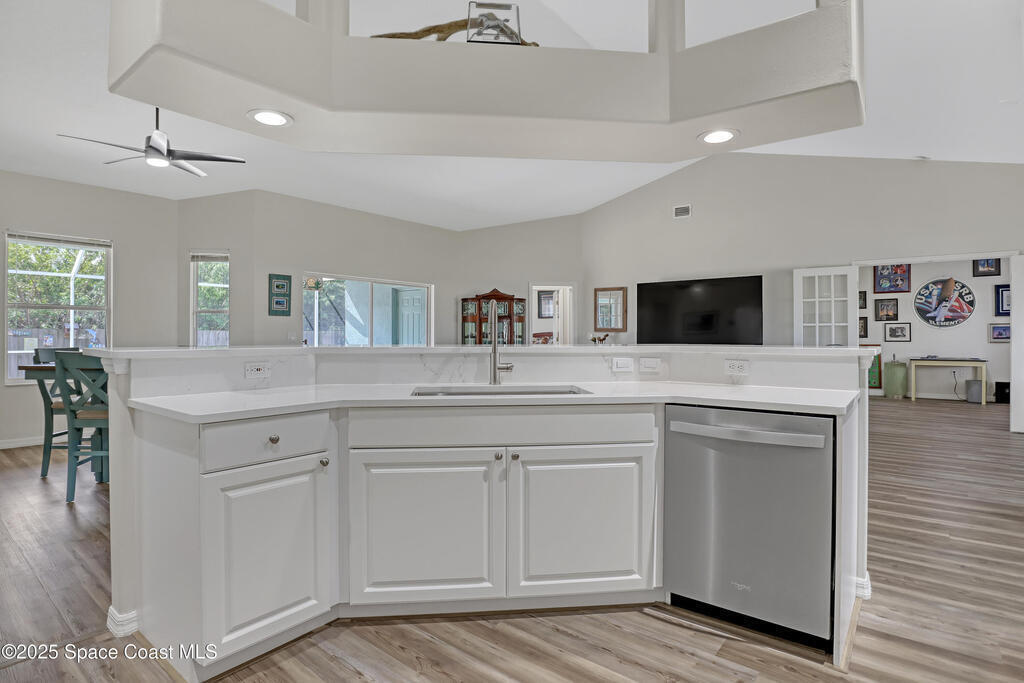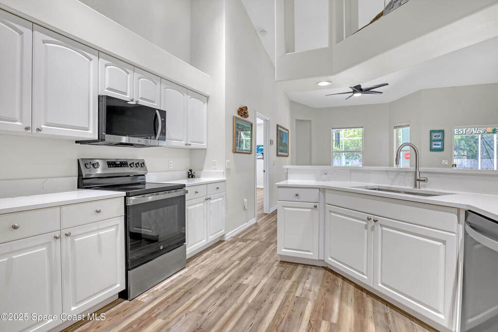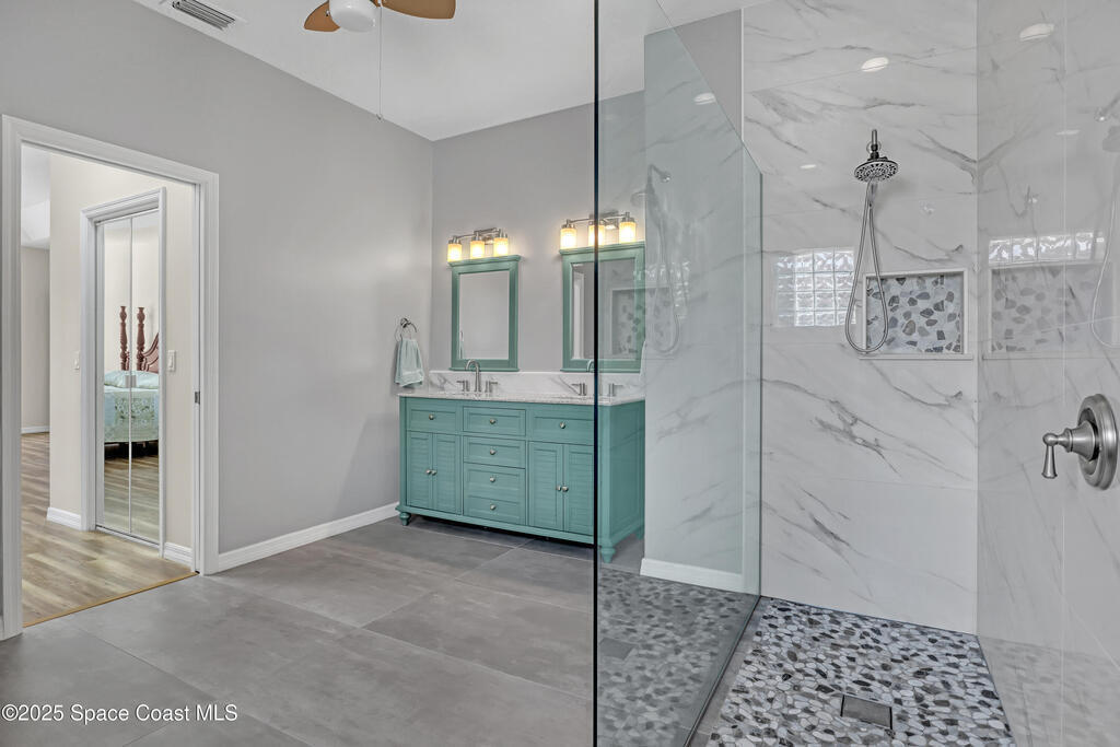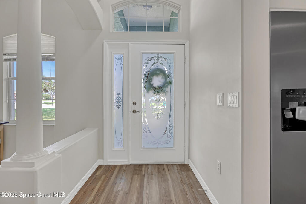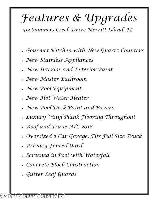 RENOVATED & MOVE-IN READY this stunning concrete block 4-bedroom, 2-bathroom, 2- car garage POOL home is located in the heart of Merritt Island nestled in the sought-after community of Summers Creek on the conveniently located Newfound Harbor Drive. Completely updated from top to bottom, this home blends modern luxury with comfortable Florida living. Step inside to discover a gourmet kitchen featuring quartz countertops and stainless steel appliances perfect for entertaining or family gatherings. The spacious, open floor plan is complemented by luxury vinyl plank flooring throughout, fresh interior and exterior paint, and abundant natural light. The HGTV-Award worthy master bathroom is a must see and is sure to WOW you! Additional upgrades include a new hot water heater and pool equipment, a newer roof and a newer A/C, providing peace of mind and energy efficiency. Outside, enjoy your private backyard oasis with a sparkling pool ideal for relaxing or entertaining year-round.