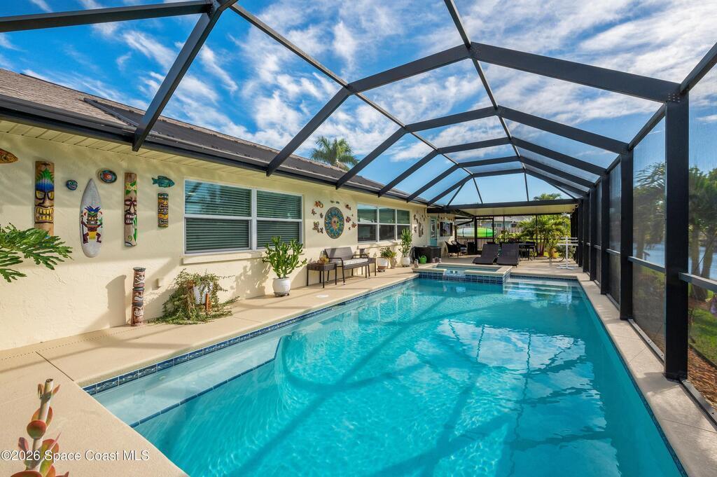 Paradise Found! Bring your boat, as this large, updated 3/2 ranch house with a beautiful open concept sits beside a wide canal leading out to the Banana River and Atlantic Ocean with a newer vinyl seawall!!! Relax or wind down in the screened patio and pool in comfort, watching manatees, dolphins, and Florida's tropical fauna just beyond the sea wall. Beautifully landscaped and private with a secluded feel yet nestled in the heart of Brevard's most popular dining, near the port, a close-up view of historic rocket launches from the front or back yard, clean beaches, and shopping all less than 10 minutes away.