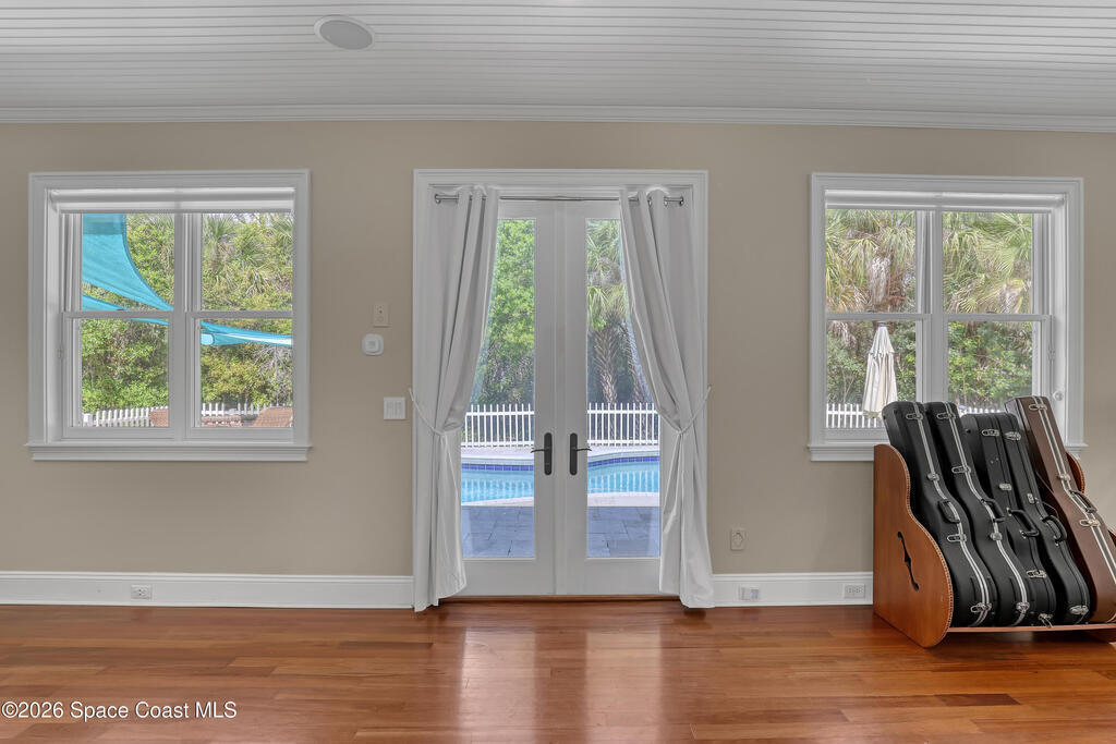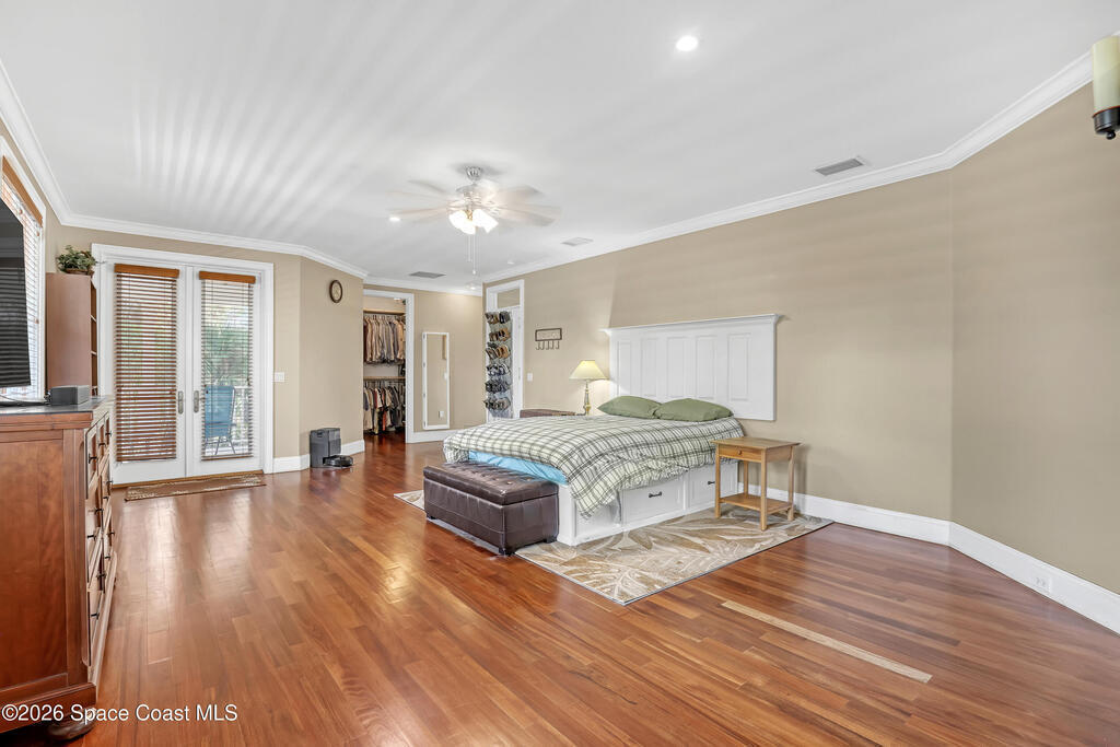 The most special & unique home and property you'll see! Absolute one of a kind w/so much character. 2 story concrete block w/concrete hardiboard siding. Wrap around porches & balconies w/amazing nature views. Complete & total privacy w/over 2 beautiful fenced acres & nobody around you. Brazilian cherry hardwood floors throughout. Pella hurricane windows & doors. Island kitchen w/custom cabinetry w/crown, tiled backsplash, quality appliances incl double oven, weather station above farmhouse sink, & granite counters. Large freeform pool & entertaining area w/marble travertine tile. Raised ceilings on both floors w/8ft doors. 2 master suites. 2 fireplaces. Whole house solar system cuts power bill by 2/3. Metal roof. On demand tankless water heater. Central vac. Private gated entrance. Stocked pond w/fountain. Huge 3 car garage epoxy floor, 8ft overhead doors & workshop area. Covered RV/boat parking w/water & 30amp power. City water plus R/O water treatment system. Surround sound. Must see