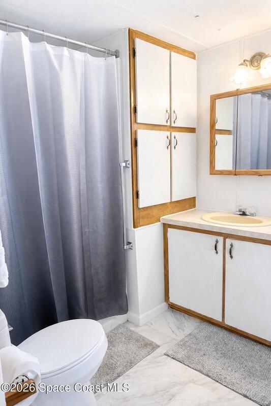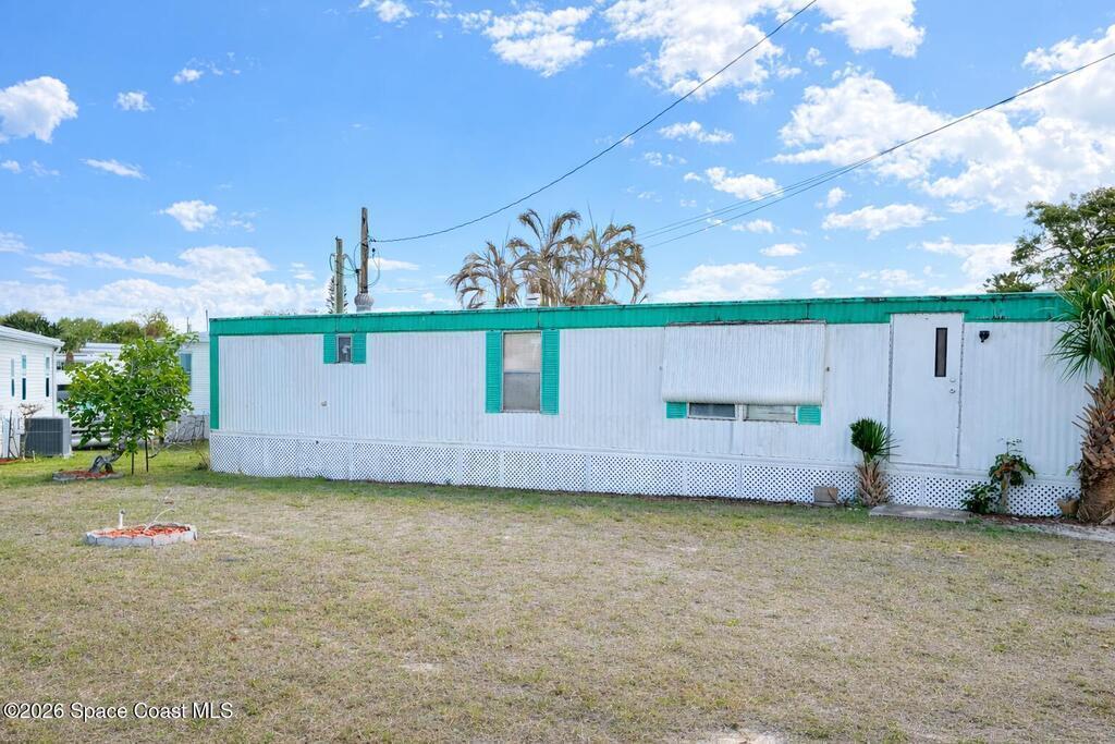 2 bedroom 1 bath home located in desirable Palm Bay Estates! This charming manufactured home offers coastal living just minutes from the scenic Indian River Lagoon. Plenty of space for outdoor relaxation to enjoy Florida's year-round sunshine. Ideal for seasonal residents, a winter getaway or as a peaceful full-time residence!Residents of Palm Bay Estates enjoy an active 55+ community with amenities such as a clubhouse, heated pool, social activities, along with easy access to boating, fishing and nearby beaches. The neighborhood's location near US-1 makes it convenient to shopping, dining and the surrounding Space Coast attractions.