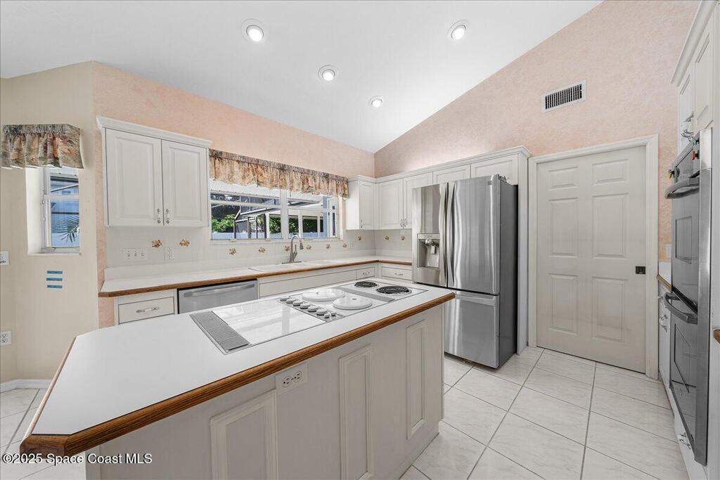 South Merritt Island Paradise in New Georgiana Settlement just waiting for you to put your stamp on it! Nestled on a spacious .34-acre lot in highly sought-after New Georgiana Settlement, this 3-bedroom, 2-bath, nearly 2,400 sq ft pool home offers the perfect blend of privacy, elegance & Florida lifestyle living. The bright & open floor plan features soaring ceilings, abundant natural light & seamless indoor-outdoor flow. The chef's kitchen opens to the family room, making it ideal for entertaining, while the split-bedroom layout ensures comfort & privacy. Step outside to your private backyard oasis, complete with a sparkling pool & jacuzzi, lush landscaping & plenty of space for gatherings. Enjoy private access & dock on the Banana River--paddleboard, kayak or taking in breathtaking sunrises. Located minutes from beaches, top-rated schools, dining & shoppingΩ≈. Roof 2022, Hot Water Heater 7 ys old, HVAC 10 yrs old. Beautiful pavered driveway and side entry garage.