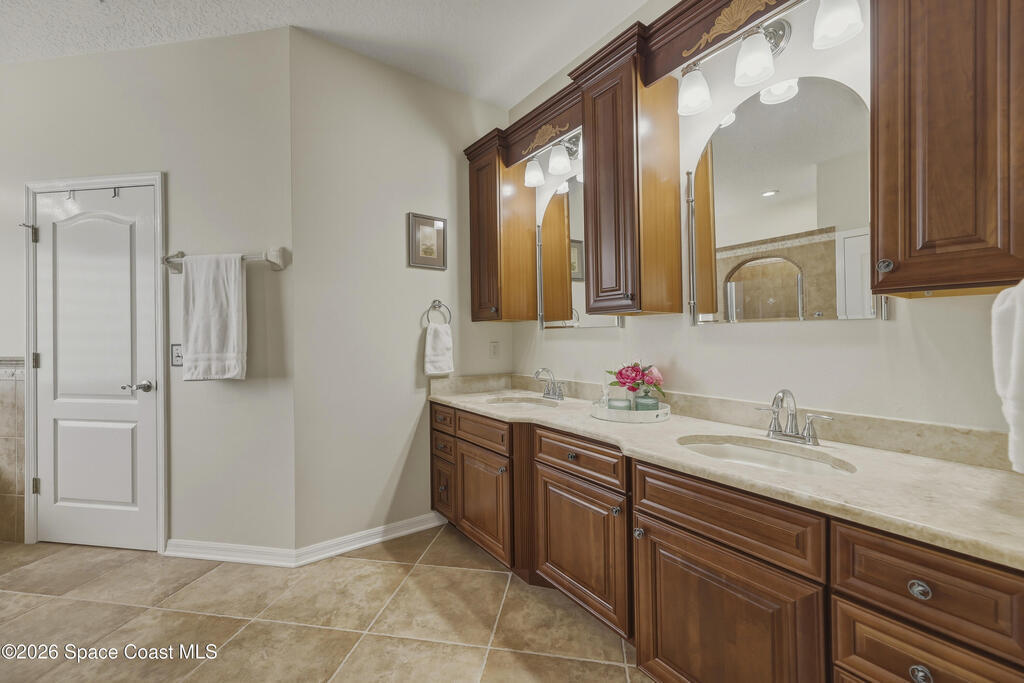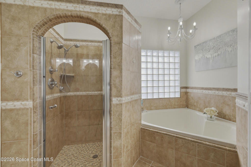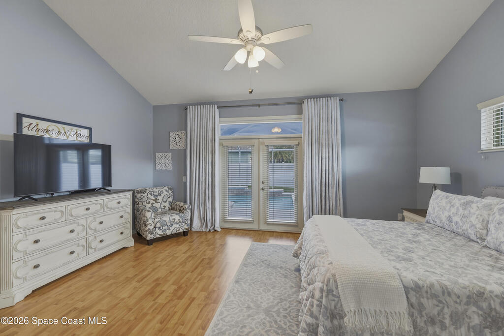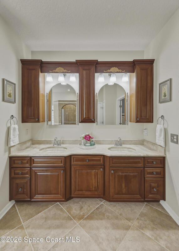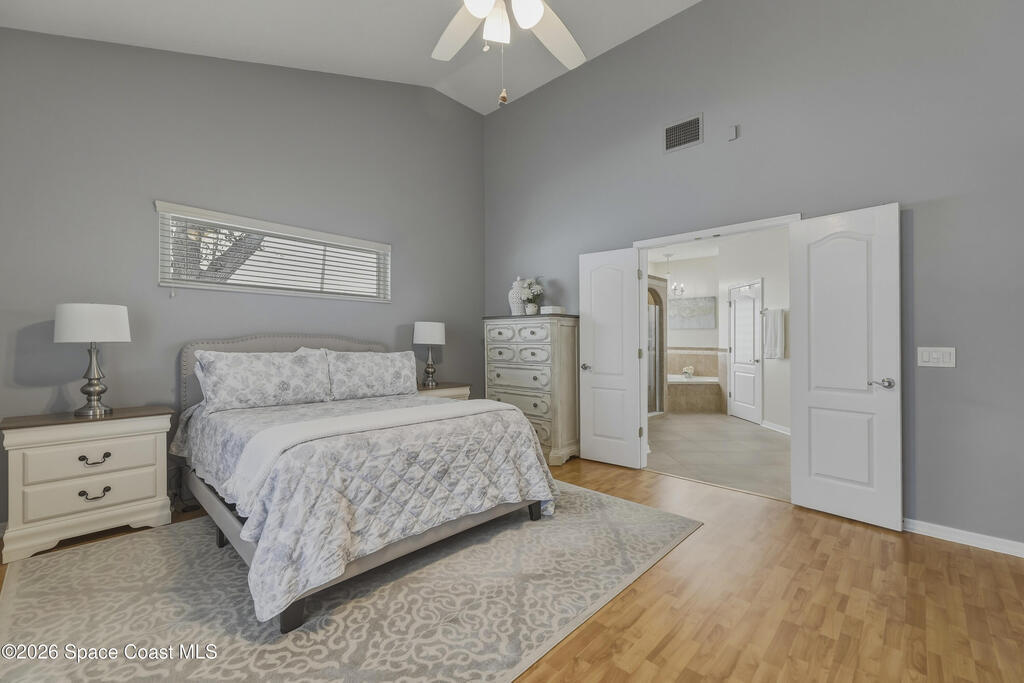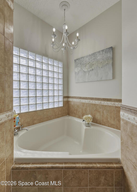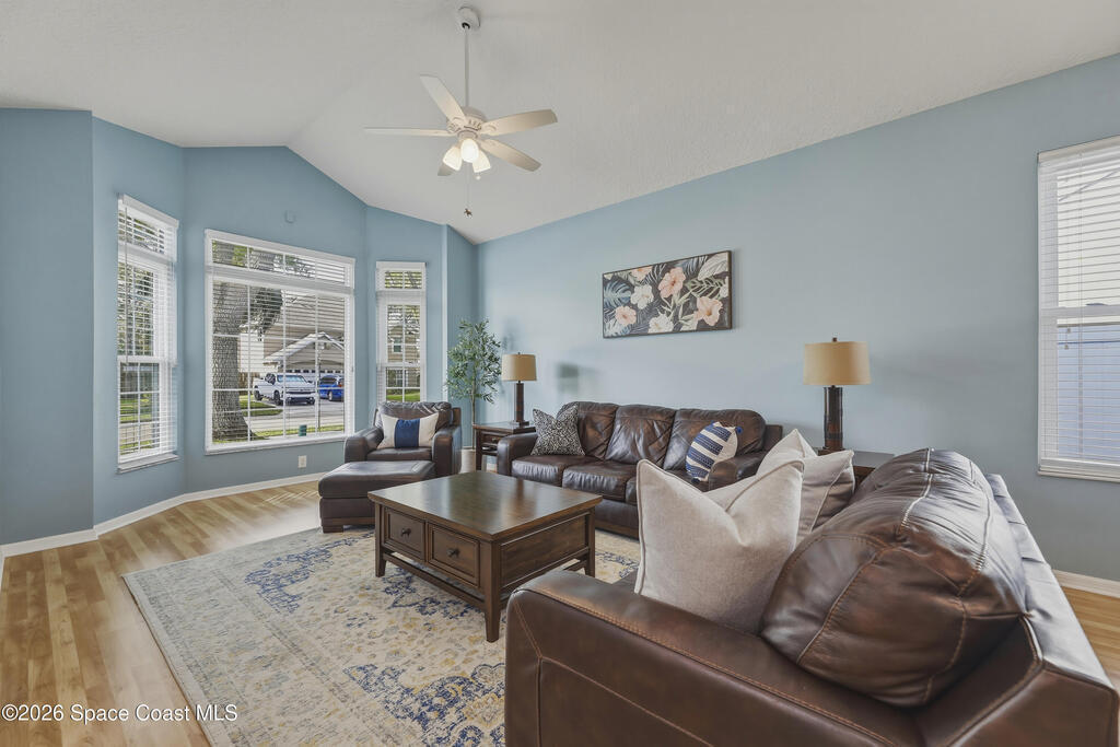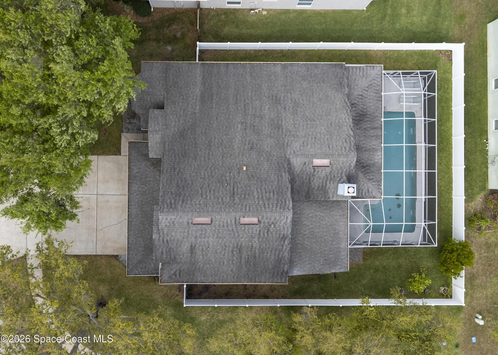 Beautiful pool home in desirable Chelsea Park on a large corner lot with a 3-car garage and private vinyl-fenced yard. The spacious family room features vaulted ceilings, a fireplace, and French doors leading to the covered lanai and screened pool--perfect for Florida living. The gourmet kitchen offers granite countertops, high-end cabinetry, and stainless steel appliances. The downstairs primary suite includes French doors to the pool and a luxurious bath with double sinks, soaking tub, and separate walk-in shower. Upstairs features three additional spacious bedrooms and a full bath.Rare VA assumable loan at 2.75%, buyer must qualify with lender. Major updates include HVAC (2021), impact windows (2021), vinyl fence (2021), pool enclosure (2021), and water heater (2022). Conveniently located near Viera shopping, dining, schools, Patrick Space Force Base, and I-95.