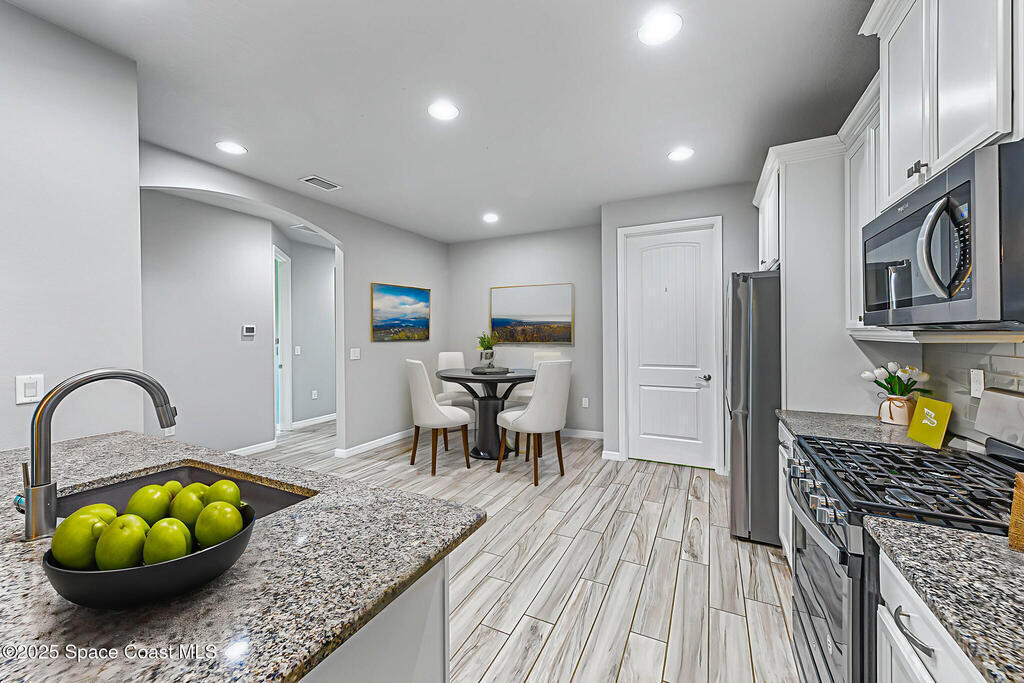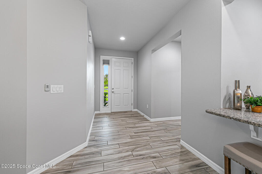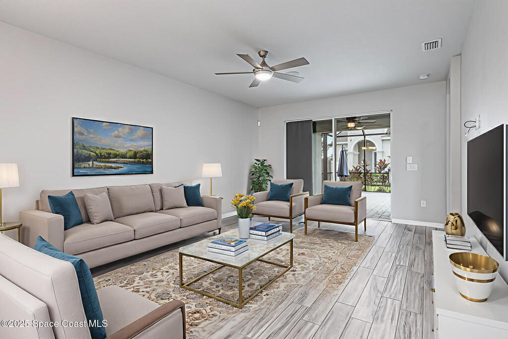 Beautifully updated end-unit home in Viera offering low-maintenance living with no carpet and brand-new tile flooring throughout--completely move-in ready. Tucked away on a private cul-de-sac with serene lake views, this home features 1,641 sq. ft. of thoughtfully designed open living space. The bright, airy floor plan flows seamlessly into a modern kitchen equipped with sleek finishes, a new refrigerator, and a new washer for added convenience.A split-bedroom layout ensures privacy, while the spacious primary suite boasts a walk-in closet and a spa-inspired bathroom retreat.Step outside to your newly added screened-in patio, perfect for relaxing or entertaining year-round. A natural gas hookup is already in place, making it easy to install an outdoor grill or even a full summer kitchen. Additional upgrades include a freshly painted garage, garage door, and front entry door--enhancing both curb appeal and functionality.