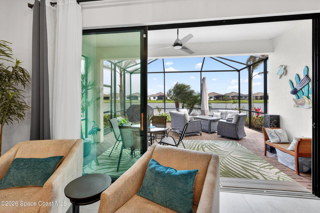Welcome to resort-style living in this sought-after active 55+ adult community located in the heart of West Viera! This charming 3-bedroom PLUS a flex room (perfect for office, hobby space, or guests) single-family detached home offers an open, bright floor plan ideal for relaxed retirement living.Step outside to your highlight feature: a beautiful, large extended screened patio overlooking a wide-open lake view -- enjoy peaceful water vistas, morning coffee, evening sunsets, or year-round outdoor relaxation without the bugs.The community delivers an incredible lifestyle with multiple swimming pools, a state-of-the-art theatre, pickleball and tennis courts, a fully equipped exercise room/fitness center, plus a variety of classes, activities, and social events to stay active and engaged.This home is close to hospital, I-95, an array of restaurants & lots of shopping.Low-maintenance single-family living at its best -- move in and start enjoying the good life today!
