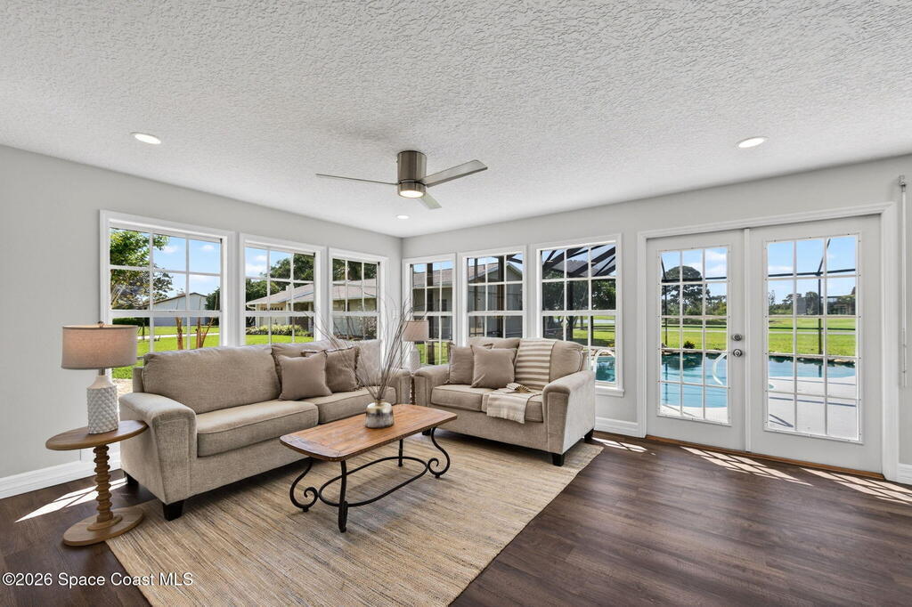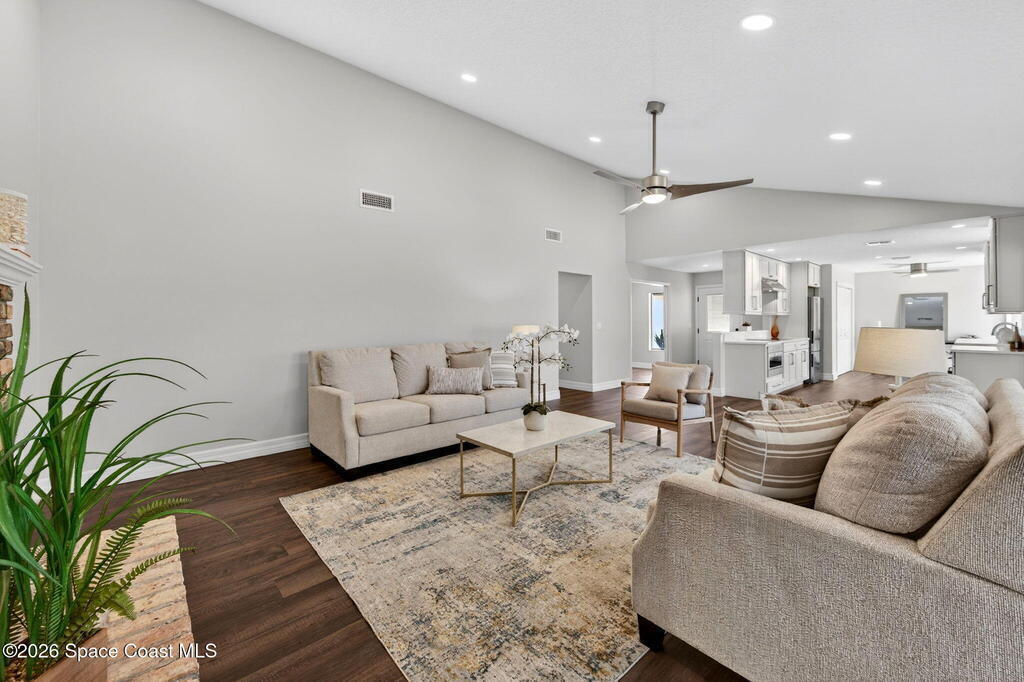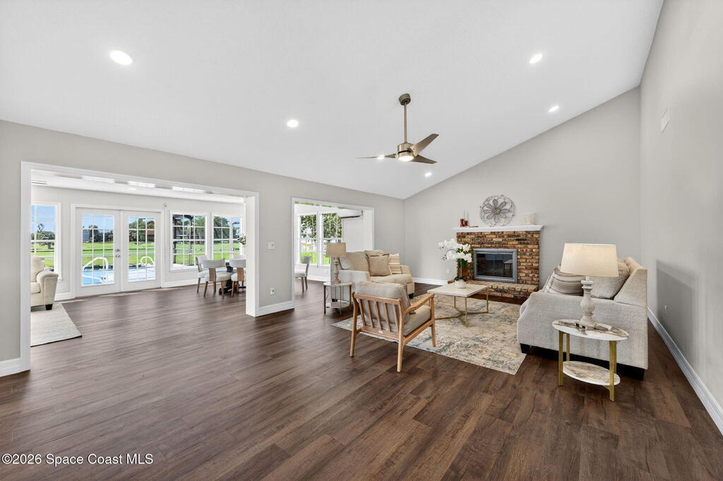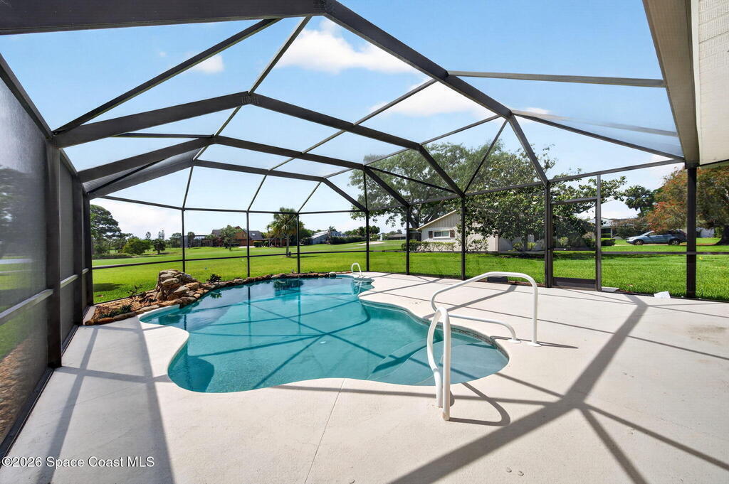 RENOVATED POOL home on the golf course in highly desirable Suntree Located on a quiet cul-de-sac with direct views of the 2nd fairway at Suntree Country Club, this home offers a rare combination of location, upgrades, and lifestyle. Fully remodeled from top to bottom, the home features a functional 3-room layout (2 bedrooms + flex room), all new luxury flooring, vaulted ceilings, recessed lighting, and a wood-burning fireplace. The kitchen has been completely redesigned with custom cabinetry, quartz countertops, and brand-new stainless steel appliances. Bathrooms are fully modernized with walk-in tile showers and updated finishes.Big-ticket updates already completed: HVAC (2024), roof (2017), hot water heater (2023), electrical panel, plumbing updates, pool enclosure re-screen, and new irrigation system--saving buyers tens of thousands in future costs. Step into the oversized Florida room filled with natural light, overlooking the screened pool and spacious lot - TRULY PARADISE!