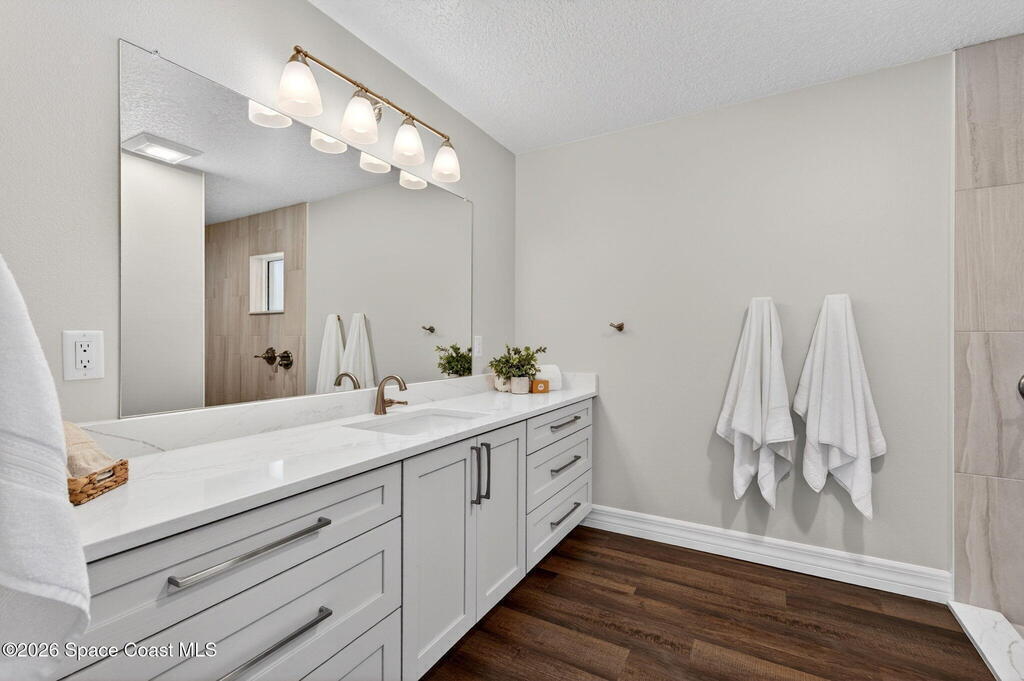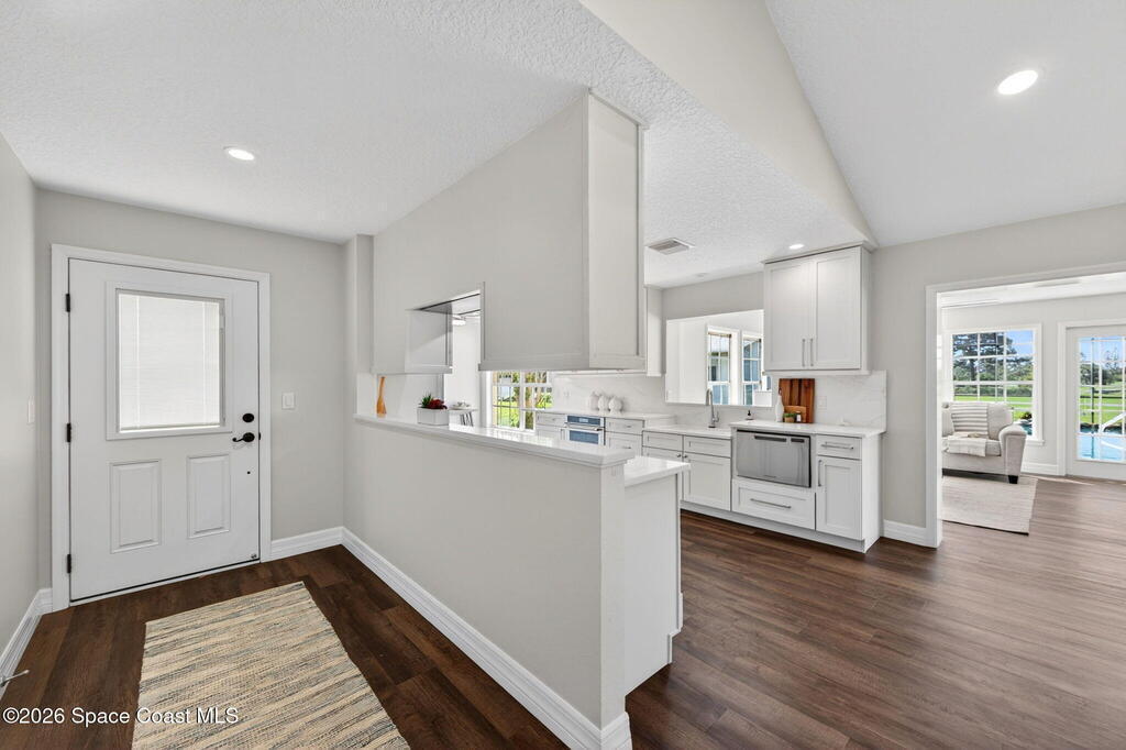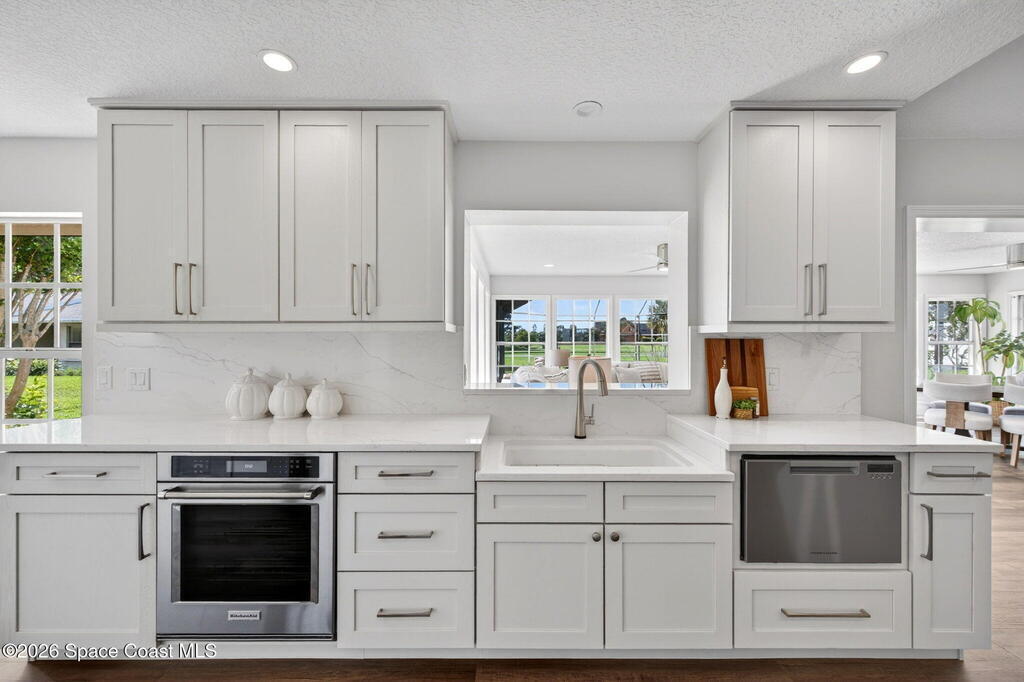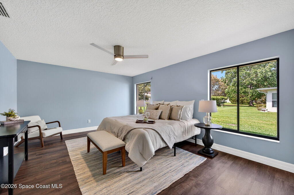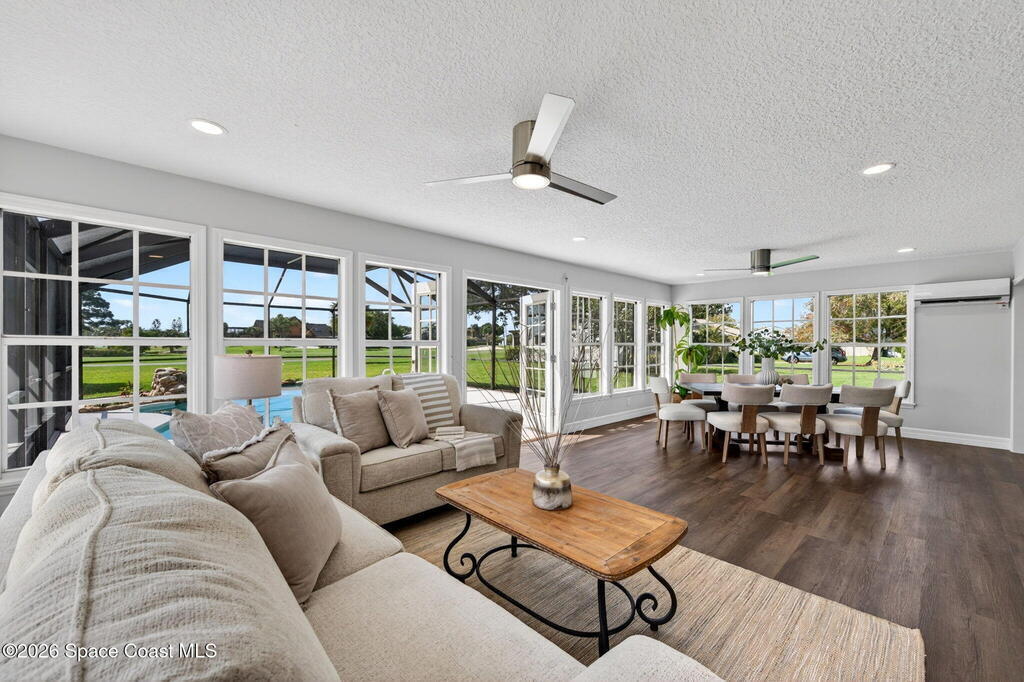 RENOVATED POOL home on the golf course in highly desirable Suntree Located on a quiet cul-de-sac with direct views of the 2nd fairway at Suntree Country Club, this home offers a rare combination of location, upgrades, and lifestyle. Fully remodeled from top to bottom, the home features a functional 3-room layout (2 bedrooms + flex room), all new luxury flooring, vaulted ceilings, recessed lighting, and a wood-burning fireplace. The kitchen has been completely redesigned with custom cabinetry, quartz countertops, and brand-new stainless steel appliances. Bathrooms are fully modernized with walk-in tile showers and updated finishes.Big-ticket updates already completed: HVAC (2024), roof (2017), hot water heater (2023), electrical panel, plumbing updates, pool enclosure re-screen, and new irrigation system--saving buyers tens of thousands in future costs. Step into the oversized Florida room filled with natural light, overlooking the screened pool and spacious lot - TRULY PARADISE!